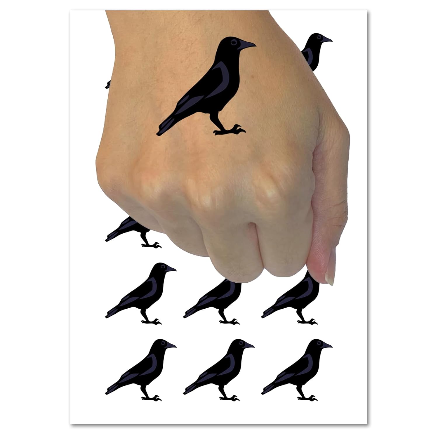 Crow Solid Temporary Tattoo Water Resistant Fake Body Art Set Collection - 54 1" Tattoos (1 Sheet)