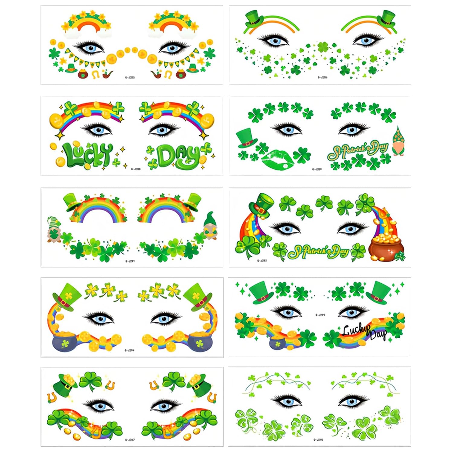 Green Shamrock Face Temporary Tattoos St Patrick's Day Face Tattoos, Green Clover Hat Lip Face Tattoo Stickers for Women Girls Lucky Green Eye Makeup Kit Irish Day Parade Party Decor 10 Sheets