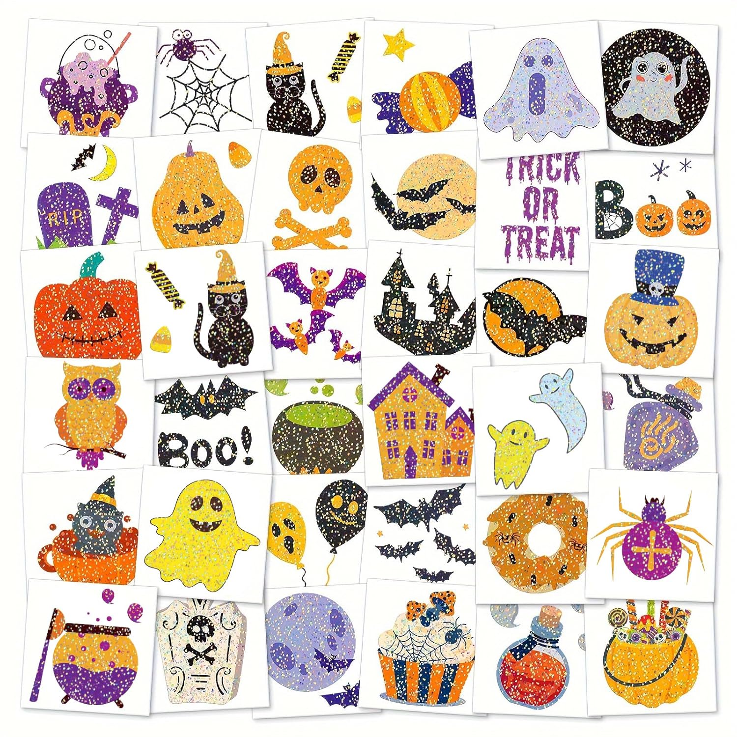 408 PCS Halloween Theme Cute Party Favors Decorations Accessories for Party Supply, Individual Bulk Ornaments Fake Glitter Temporary Tattoo Stickers for Halloween