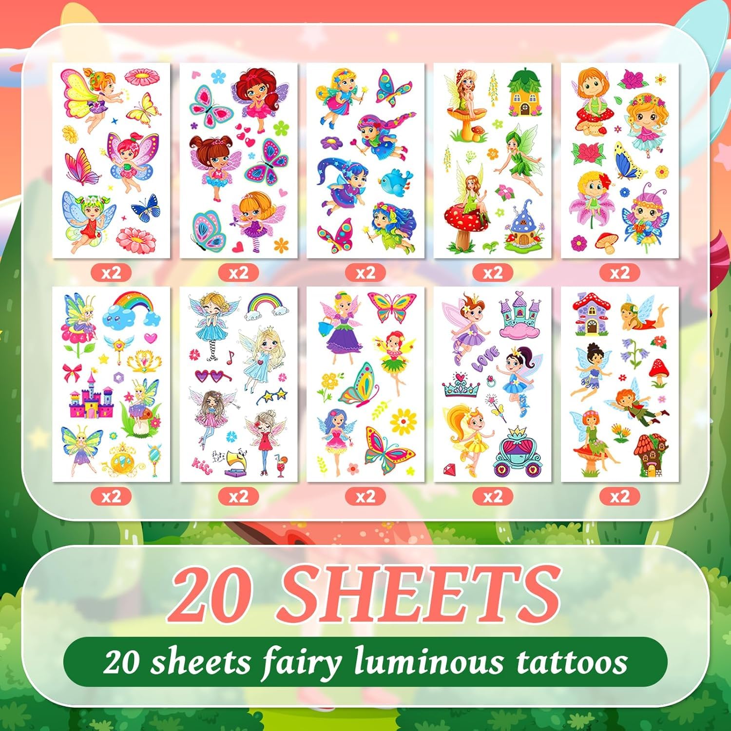 50 Sheets Glow in night Mermaid Temporary Tattoos, Sea Creatures & Fairy Designs, Oblong Shape, for Beach Party Decorations, Birthday Gifts, Mermaid Party Decorations