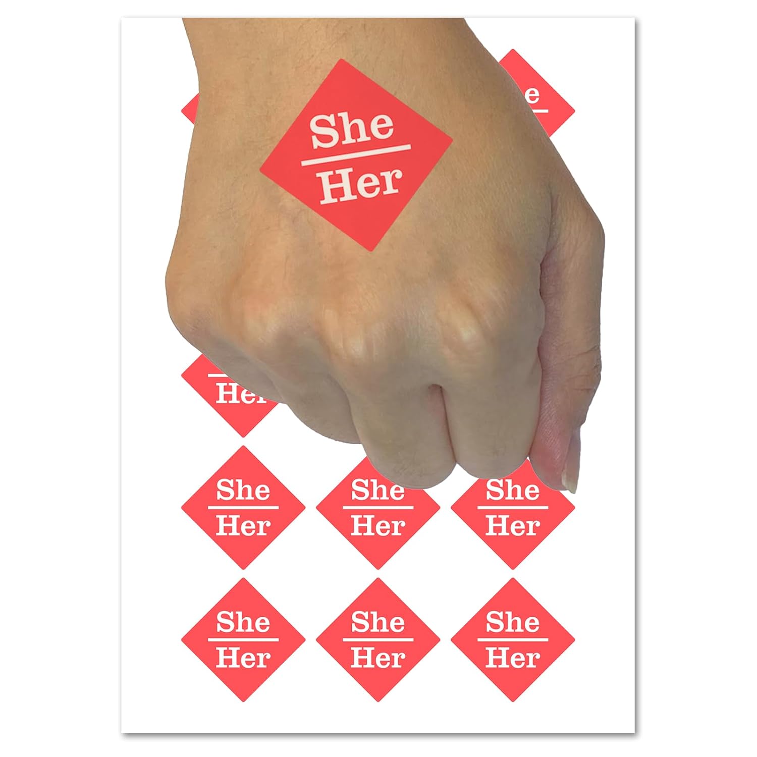 Pronouns She Her Temporary Tattoo Water Resistant Fake Body Art Set Collection - 54 1" Tattoos (1 Sheet)