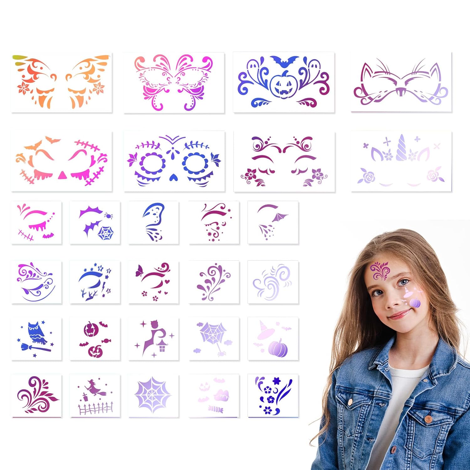 28pcs Body Paint Stencils, Durable Reusable Face and Body Painting Templates for Kids & Adults Practical Accessories for Holiday Halloween Party Makeup
