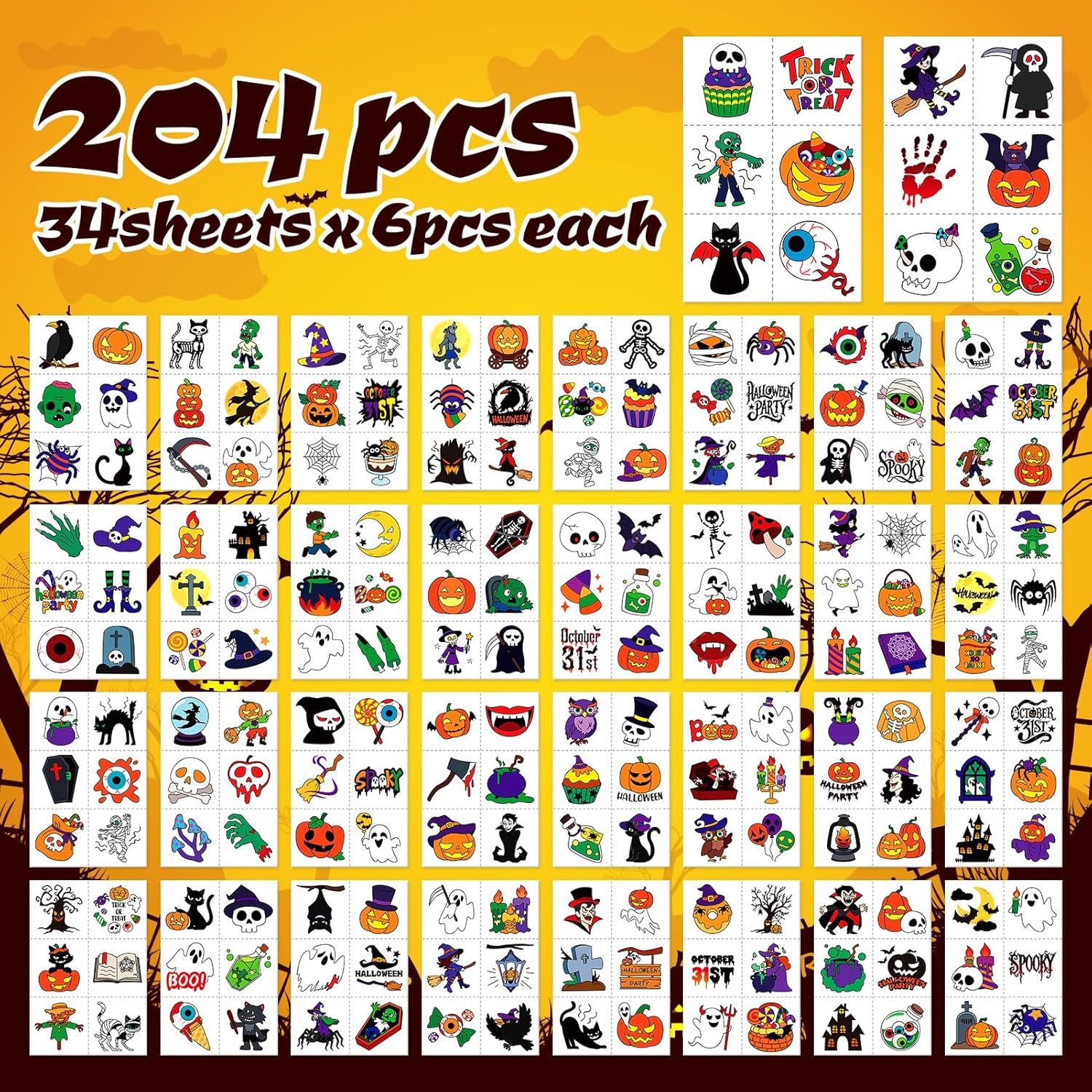 408 PCS Halloween Tattoos for Kids, 204 Glow + 204 Colorful Tattoos, Halloween Treats Non Candy, Party Favors, Goodie Bag Stuffers, Halloween Decorations, Party Supplies for Boys Girls