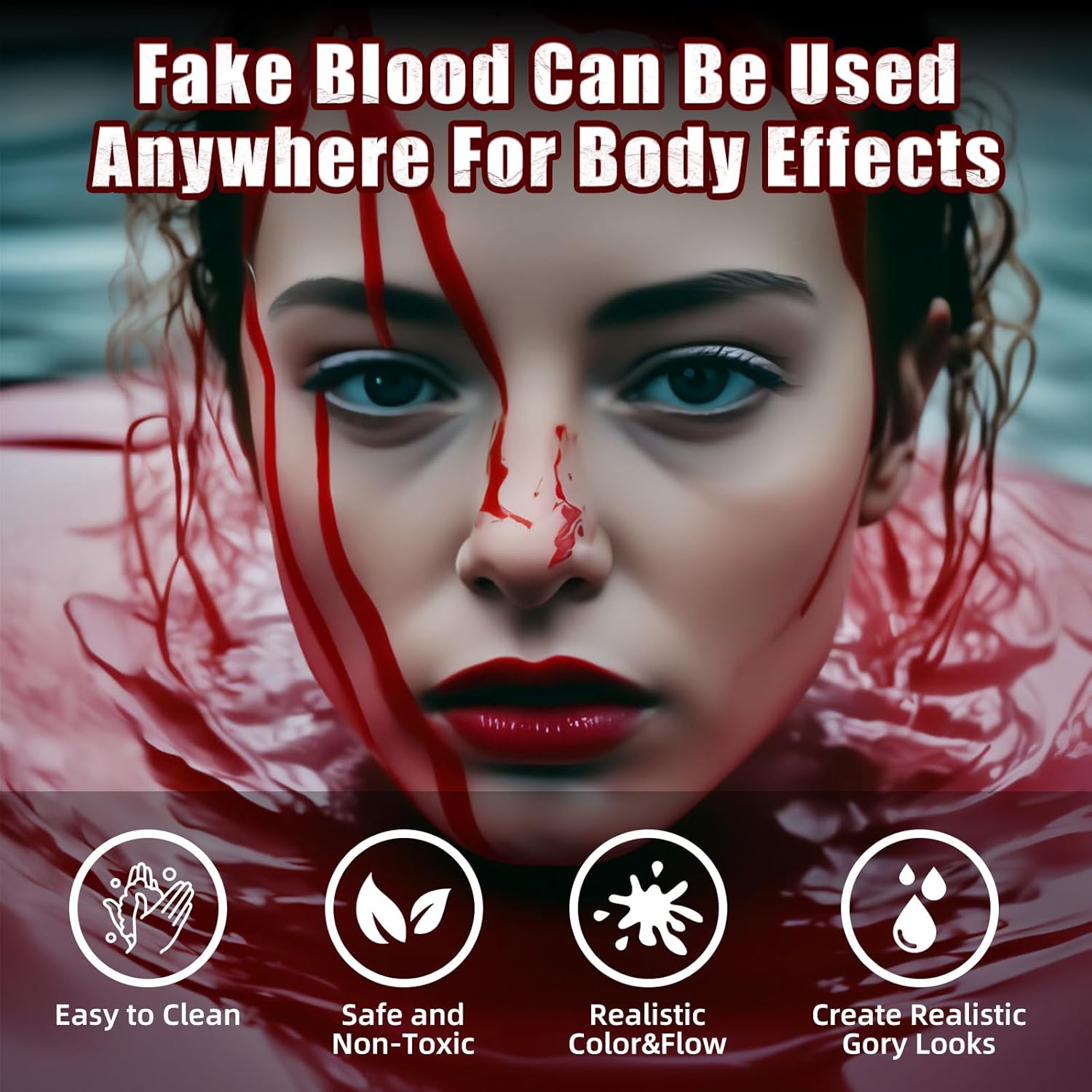 Halloween Fake Blood Spray, Washable Realistic Fake Blood Spray Makeup for Costume, Perfect for Vampire Makeup, Clown & Sfx & Cosplay & Zombie Make Up Kit, 2 Pack