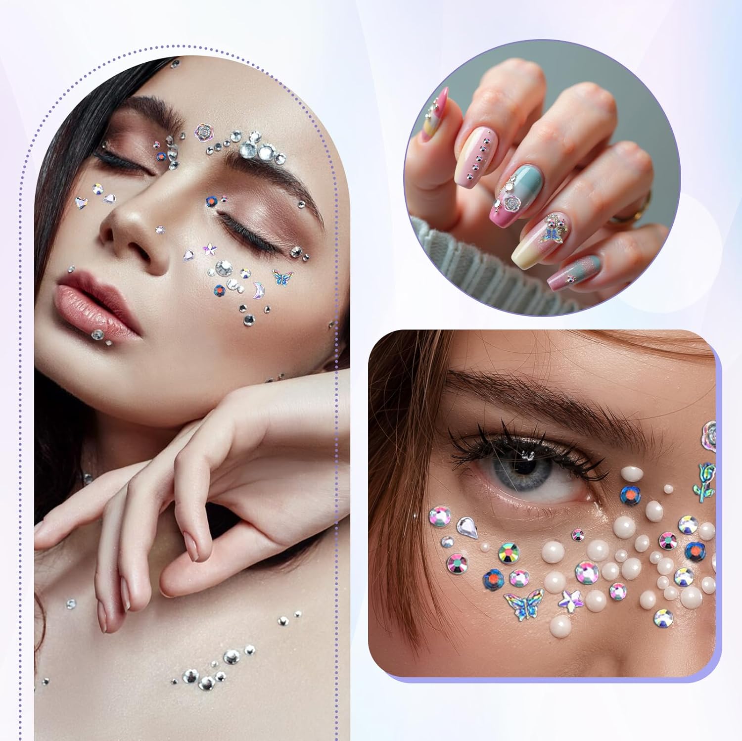 Self Adhesive Face Gems Stickers,6 Sheets Cheek Gems Face Jewels Stickers Eye Jewels Rhinestones for Women Festival Accessory and Nail Art Decorations
