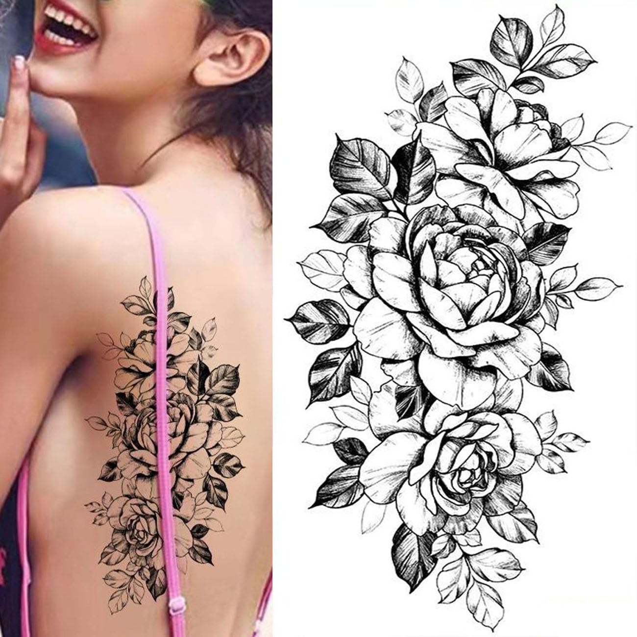 2PCS Peony Flower Bird Body Tattoos Flowers Hand Drawing for Men, Women, Adults, Kids, Realistic Head Body Art Sticker, Arm Neck Temporary Waterproof Art Tattoos