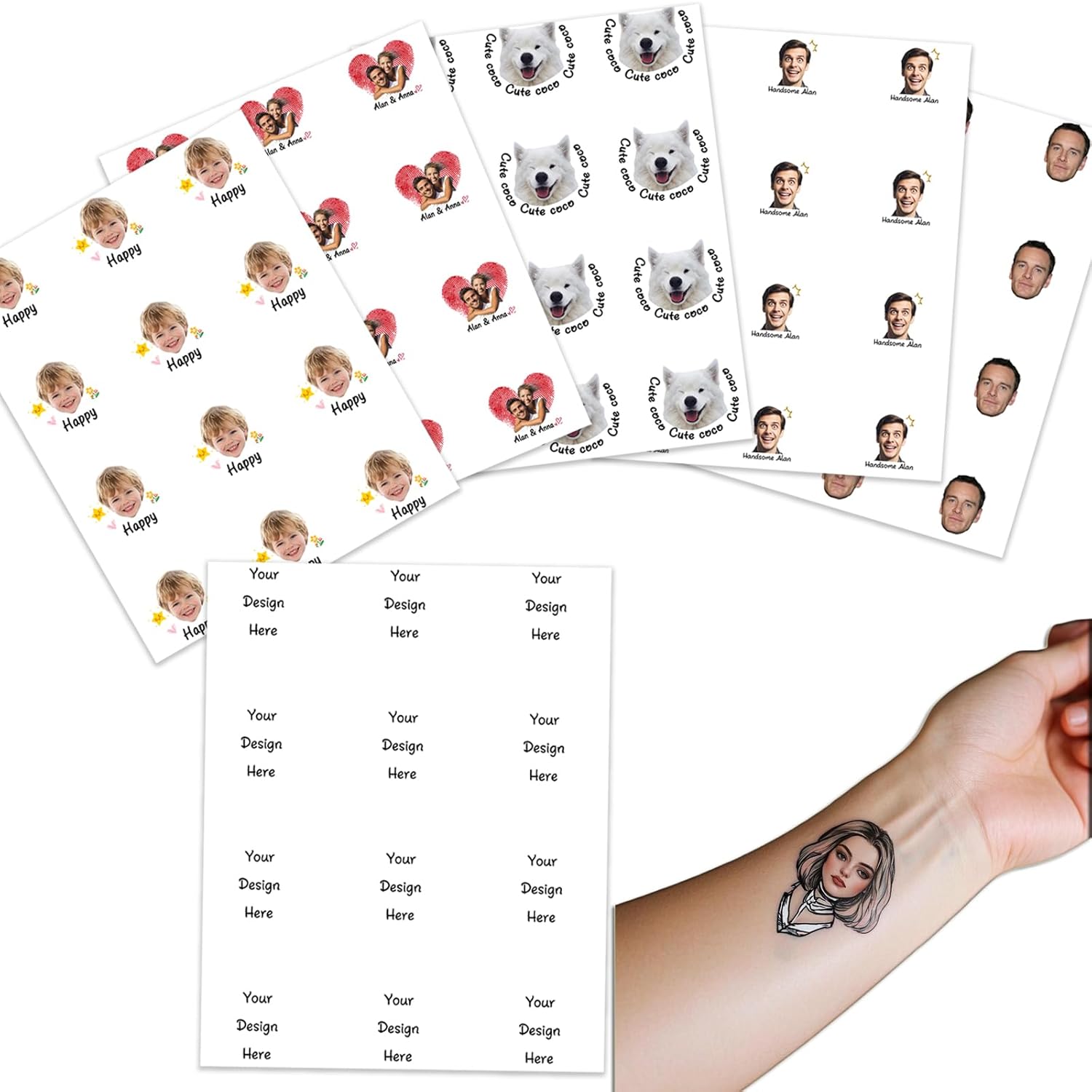 12/24/36Pcs Custom Temporary Tattoo Kits for Adults Kids, Personalized Photo Tattoo Transfer Paper, Personalized Fake Tattoo Make up (24PCs)