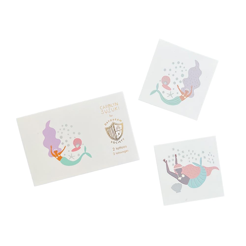 Daydream Society Under the Sea - Temporary Tattoos - Mermaid Design - Kids Tattoos in Pastel Colors and Holographic Foil Pattern - Pack of 2 Temporary Tattoos - For Birthdays, Mermaid Parties and more