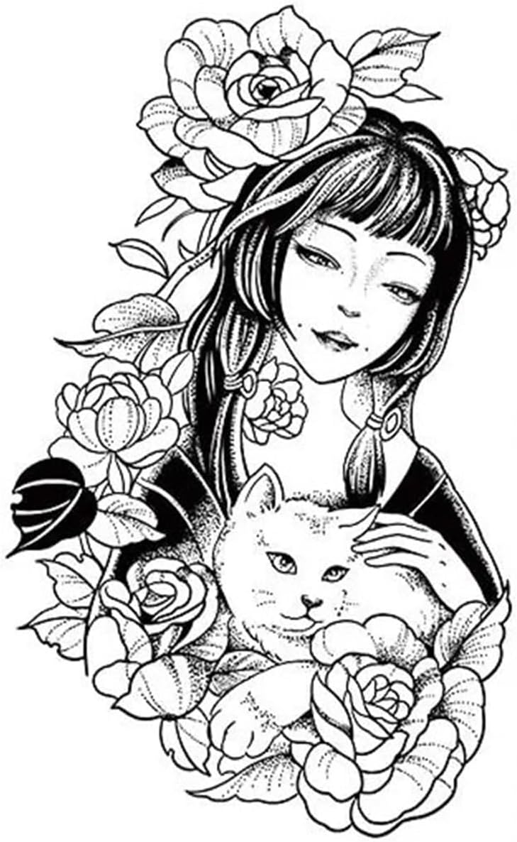 Geisha And Kitten, Tattoo Stickers, Realistic Fake Tattoos For The Back