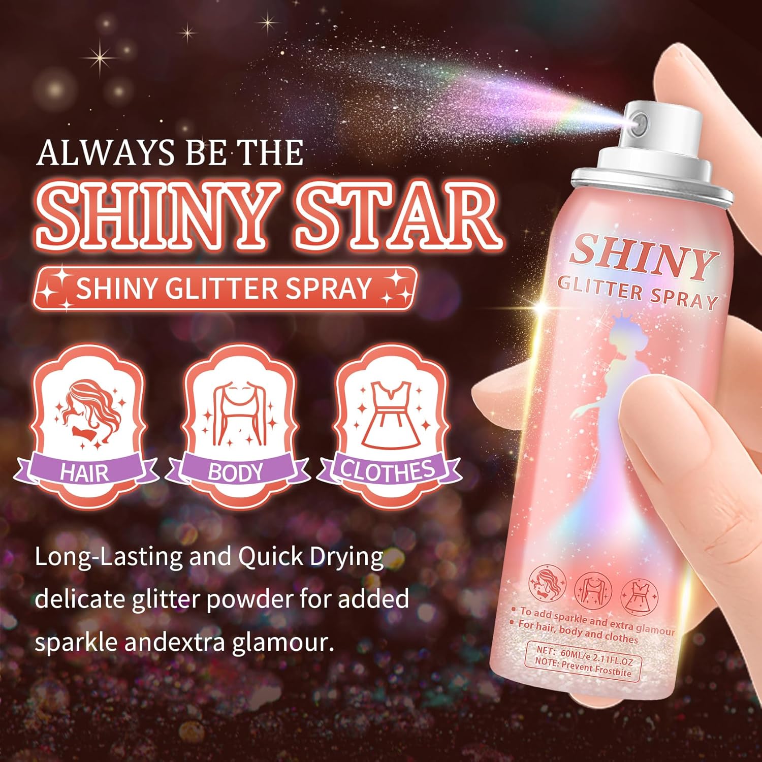 AWCCXMYM Body Glitter Spray Sparkle Hair Glitter Quick-Drying and Long-Lasting Glitter Spray for Hair and Body with Halloween, Christmas,Festival Glitter Makeup Prom 2.11 Fl Oz