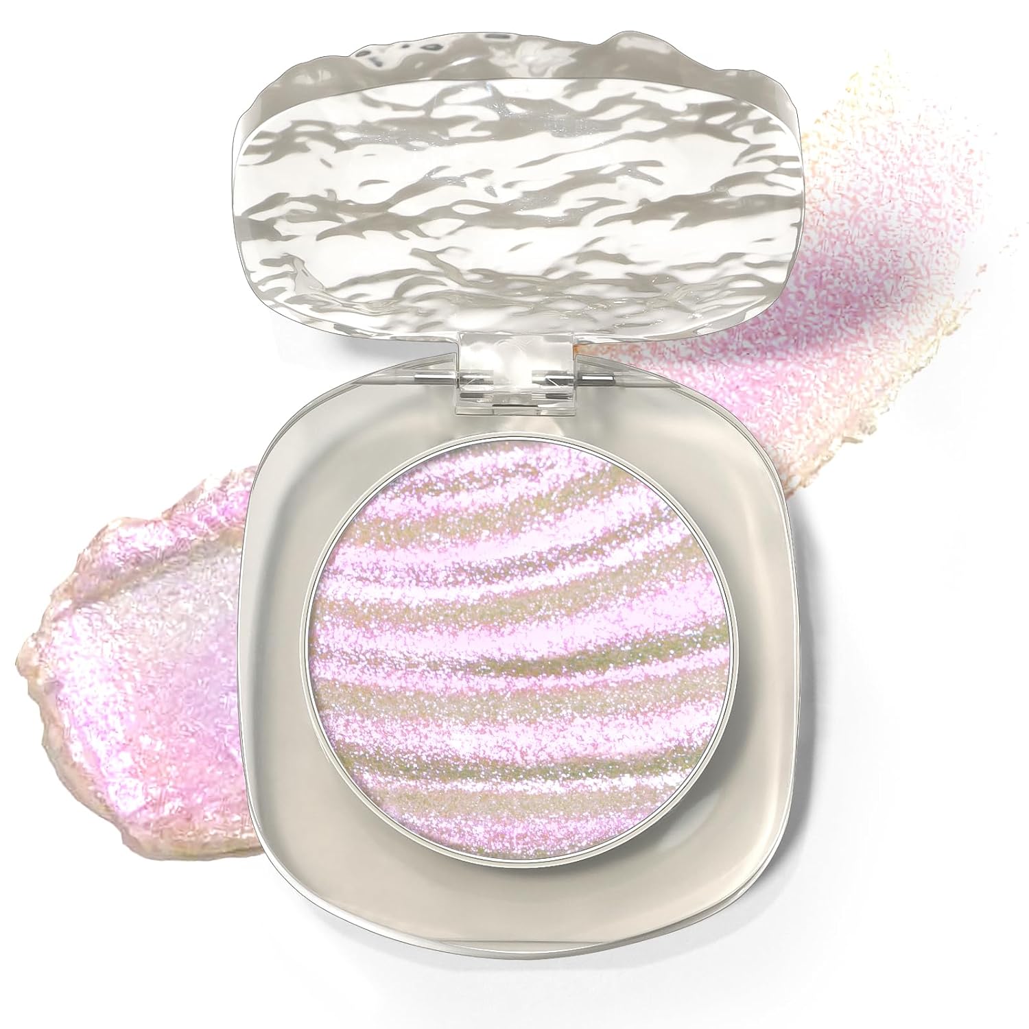 Chameleon Holographic Highlighter Palette, Multichrome Cream Multi-use Eyeshadow Shifting Sparkling Color Shifting Inner Corner Eye Highlighter Brightener for Mermaid Makeup&03 Pink Purple