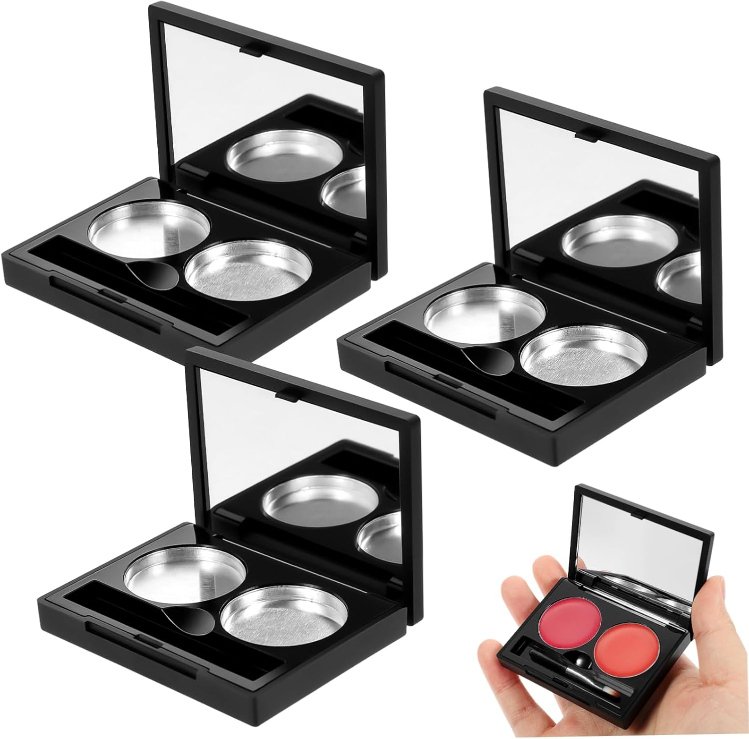 3sets Empty Eyeshadow Cases Dual Compartment Makeup Organizer for Easy Diy Storage Lightweight and Portable Cosmetic Containers for Blush and Highlight Powder