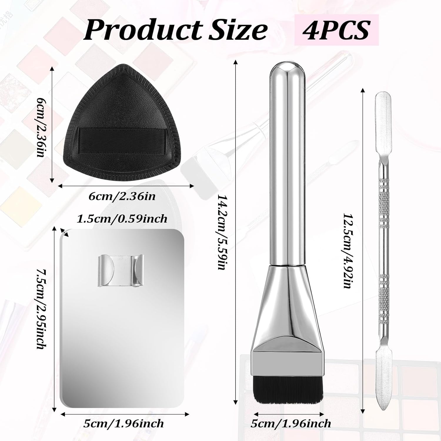 4Pcs Makeup Foundation Mixing Palette Set, Including Spatula Makeup Brush, Palette Tray, Powder Puff Make Up Accessories for Women Girl Make Up Cosmetic Spatula Tool
