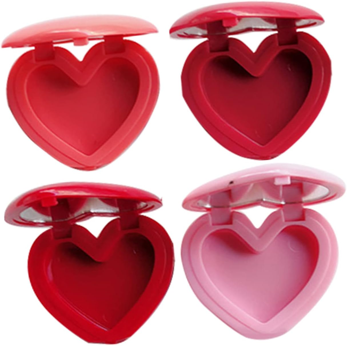 4Pcs Heart-shaped Empty Eyeshadow and Lip Containers with Mirror Compact Cosmetic Cases for Travel and DIY Makeup Storage