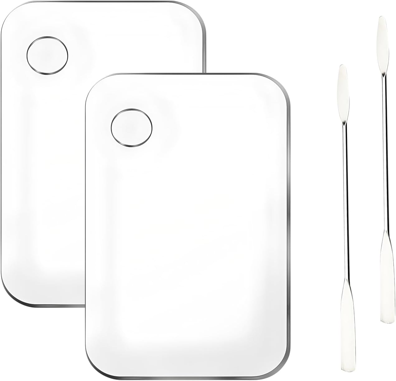 Stainless Steel Makeup Mixing Palette Set 2pcs 4-Tools Includes Spatulas for Cosmetic Mixing for Nail Personal Use