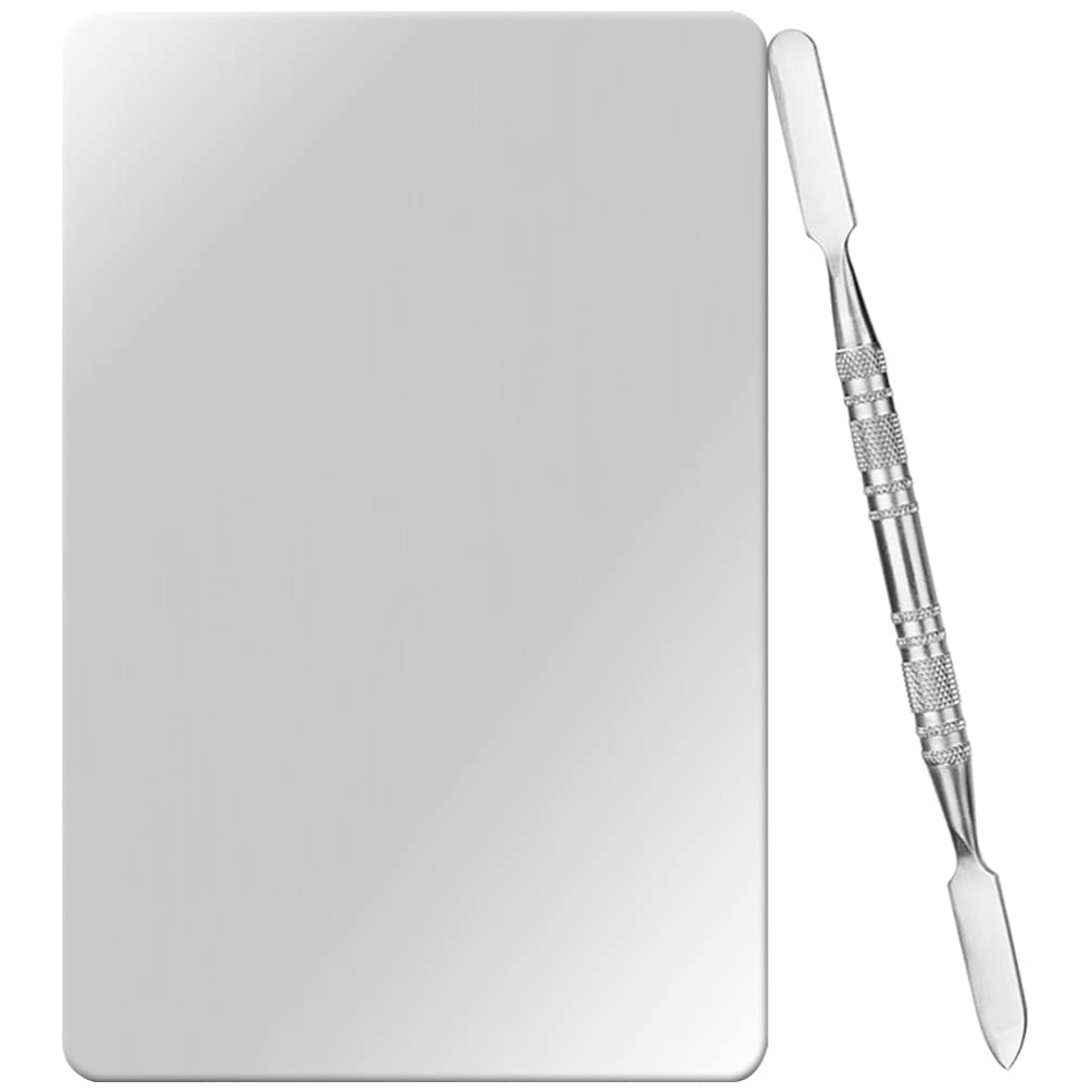 1set Stainless Steel Makeup Mixing Plate Spatula Professional Cosmetic Palette for Foundation and Nail Art Easy to Clean and Custom Mixing Tool