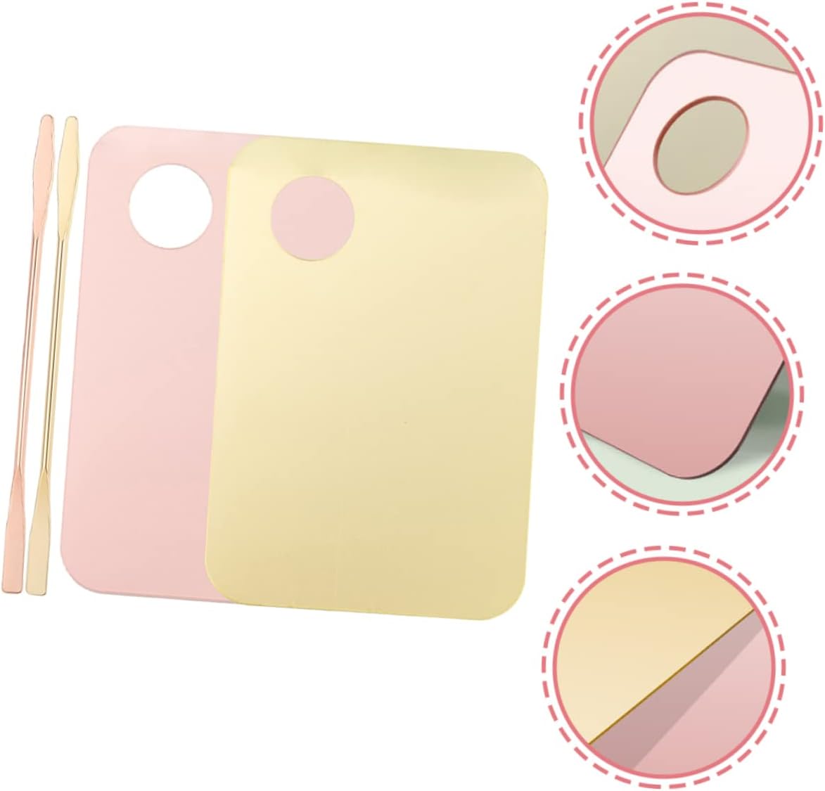 2sets Stainless Steel Makeup Mixing Palette Face Spatula Nail Mixing Palette for Blending Colors