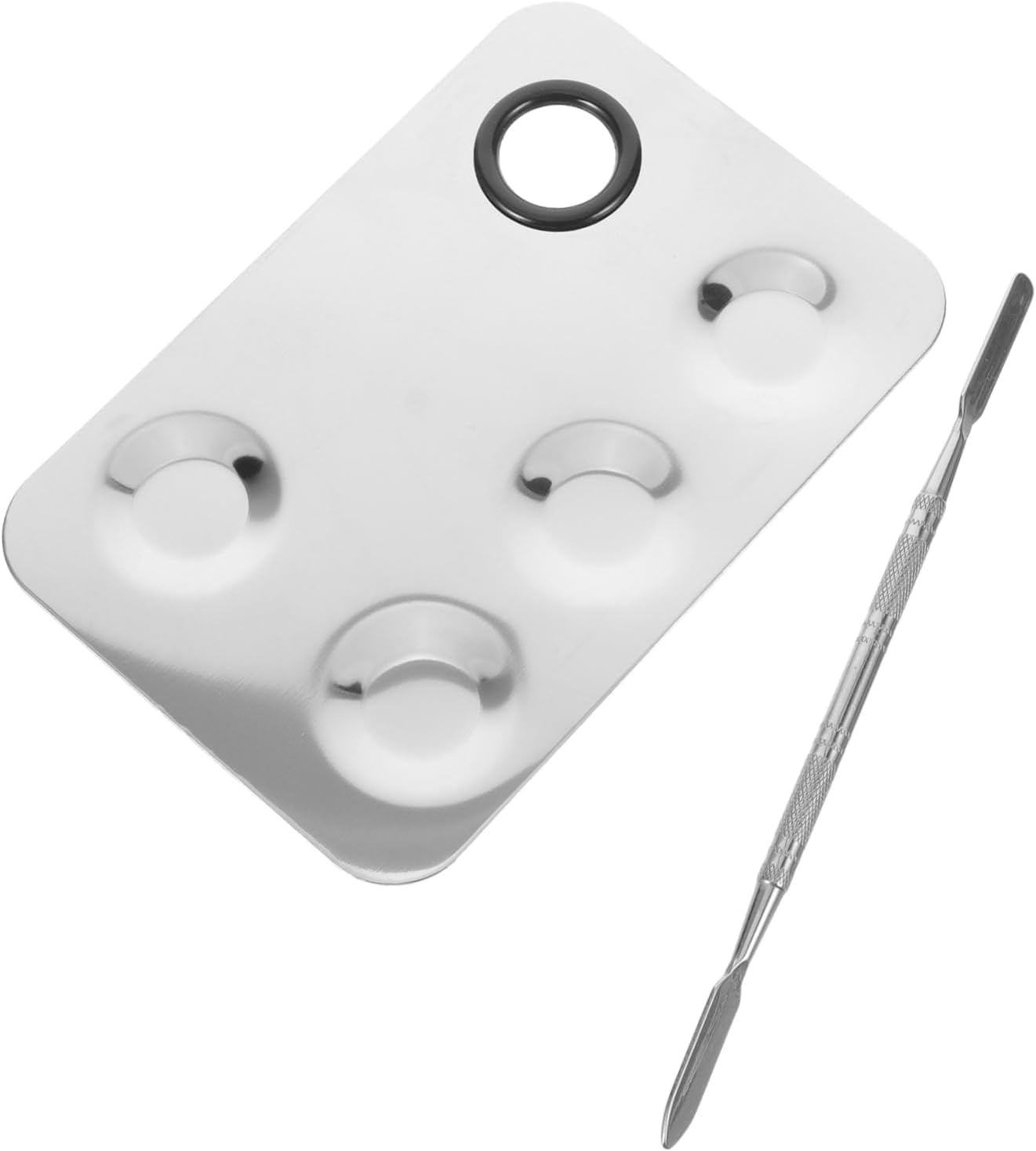 Vaguelly 1Set Stainless Steel Makeup Mixing Plate with Spatula Cosmetic Palette for Foundation Nail Polish Easy to Clean Compact Design for Travel