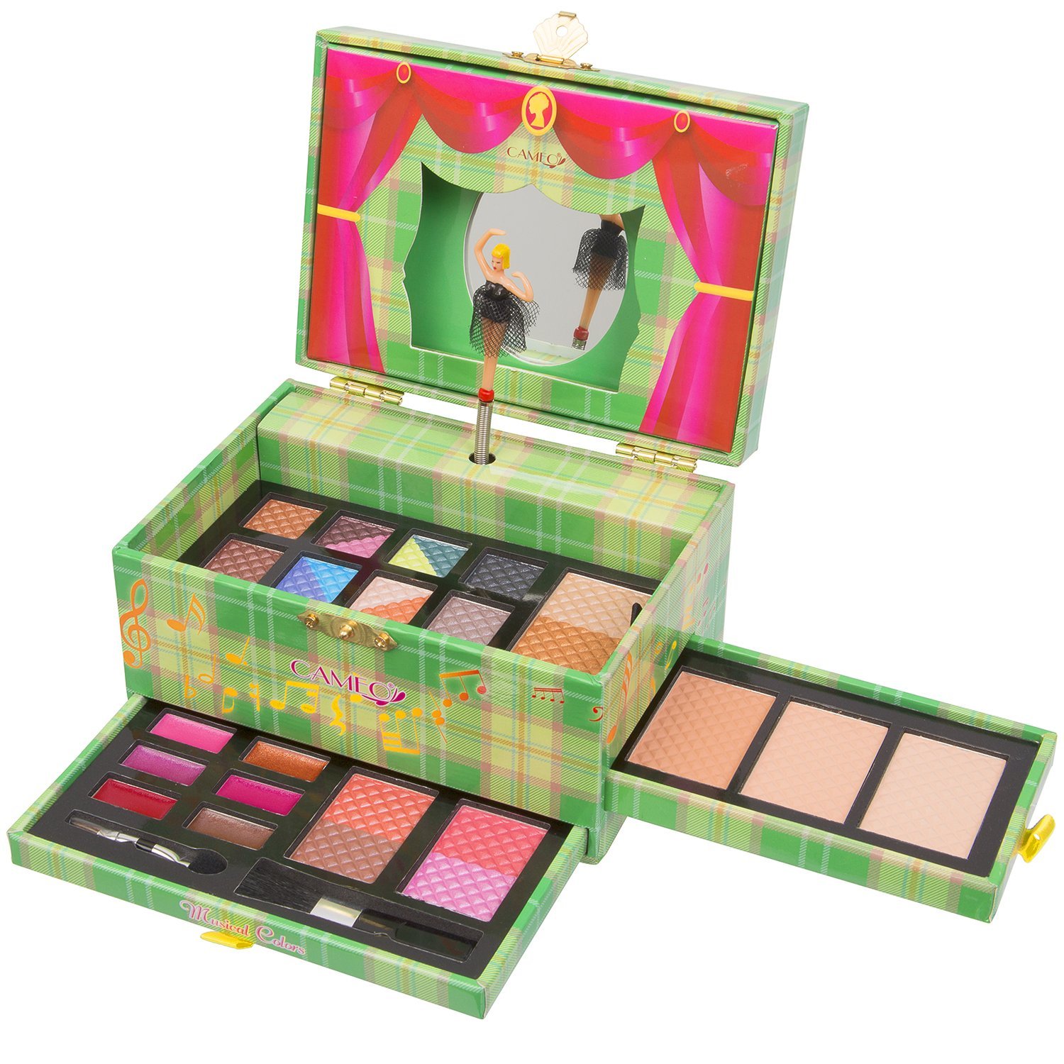Carry All Musical Colors Make up Kit 12 Eyeshadows 3 Eyebrow Powders 1 Shimmer Face Powder 3 Face Powders 2 Blushes 6 Lip Colors and Applicators