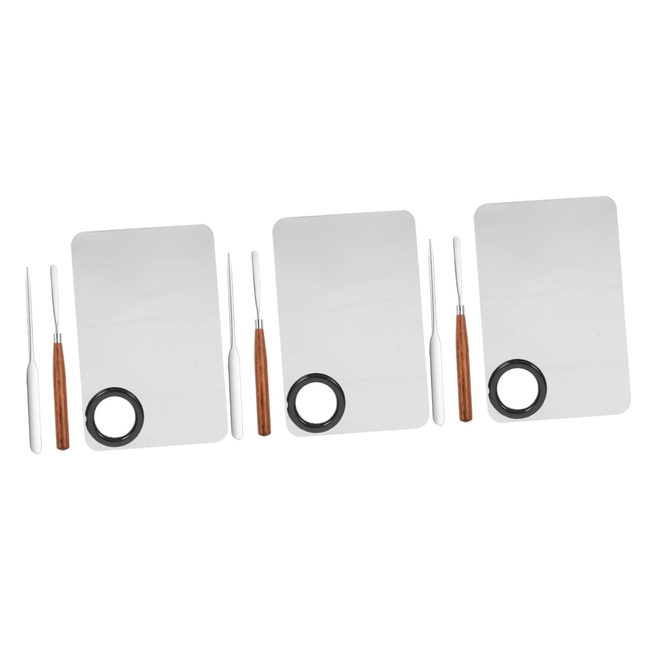 FRCOLOR 3sets Stainless Steel Makeup Mixing Palette with Spatula for Foundation Nail Art and Mixing for Beauty Salons and Home Use