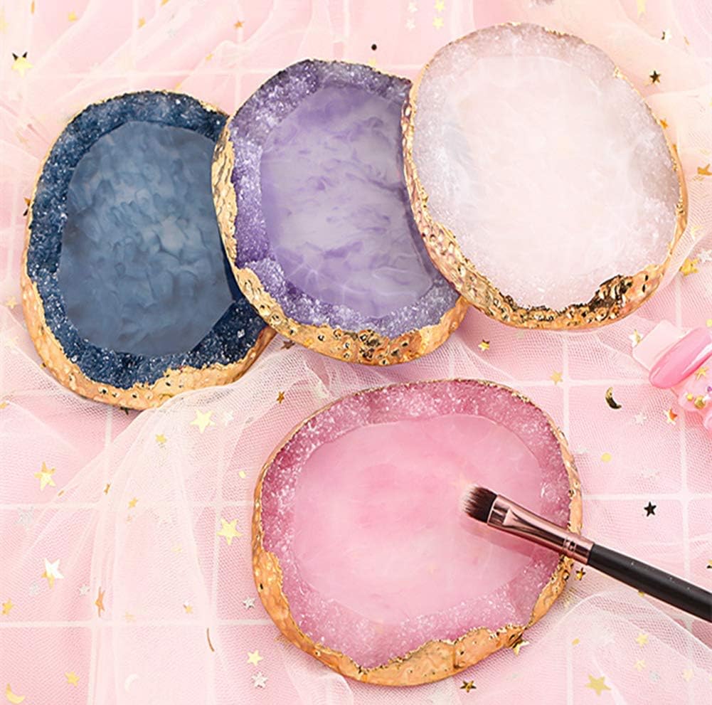 1pc Blue Golden Edge Resin Nail Art Palettes Nail Mixing Palette Polish Color Mixing Plate Nail Holder Display Cosmetic Mixing Tools Makeup Palette Tray Accessories (blue)