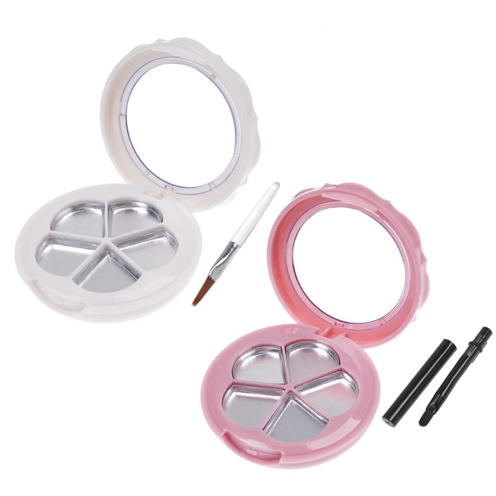 2 Pack Flower Shaped Empty Eyeshadow Palette with Lip Brush & 5-Grid Metal Pans, Eyeshadow Pans Make Up Lipstick Palette Container Case
