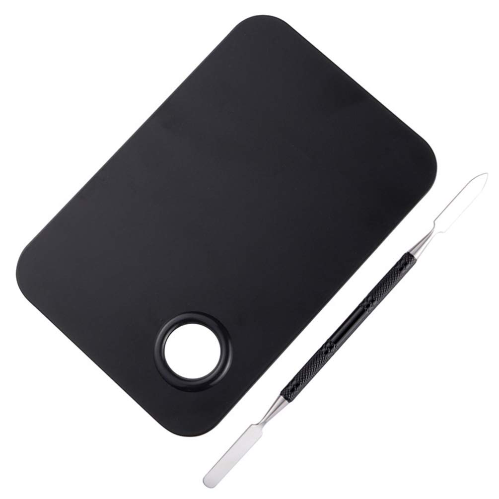 Makeup plate,Clear Acrylic Makeup Nail Art Cosmetic Mixing plate& Stainless Spatula Tool Set