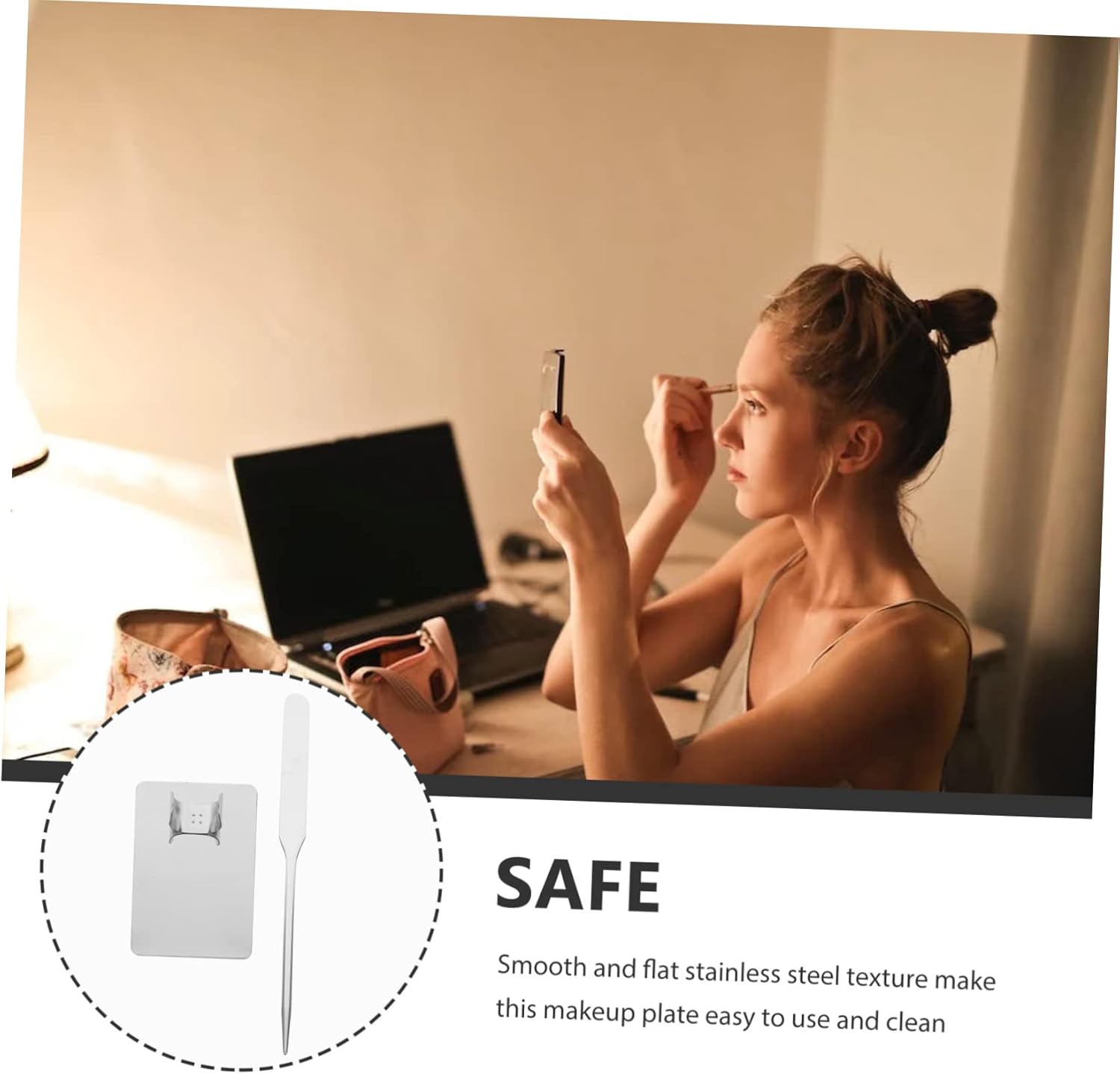 1set Cosmetic Mixing Plate with Spatula Stainless Steel Makeup Tray for Foundation Nail Pigment Blending Easy Cleaning for Color Mixing and Application