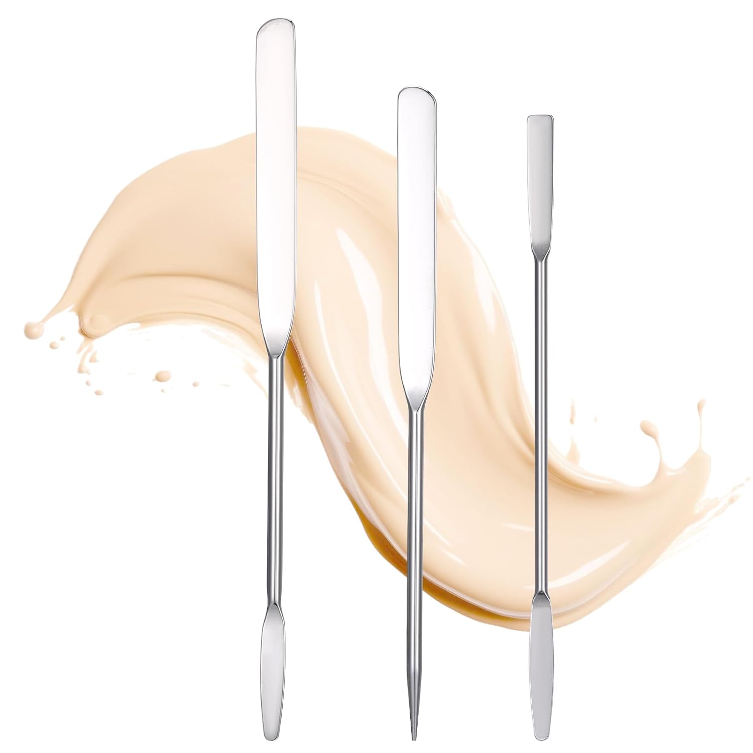 3 pcs Foundation Spatula Makeup Spatula Stainless Steel Professional Makeup Spatulas for Even Application of Foundation Tiny Facial Beauty Palette Mixer Face Cream Applicator Cosmetic Mixing Tool