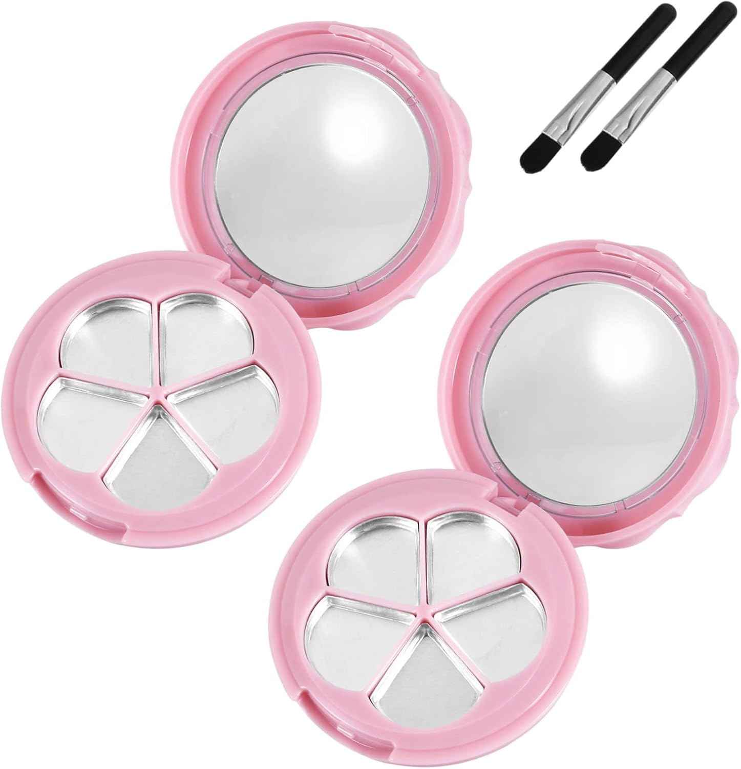 GALPADA 2 Sets Refillable Eyeshadow Palette with Mirror and Brush Portable Makeup Container for Blush Highlighter and Powder Storage Travel Cosmetic Organizer Random Color