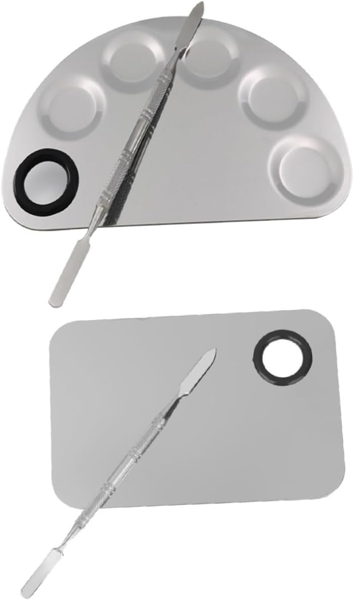 LIFKOME Stainless Steel Mixing Palette Set of 2 Versatile Makeup Mixing Trays for Foundation Paint and Nail Art for Makeup Artists and Cosmetic Applications