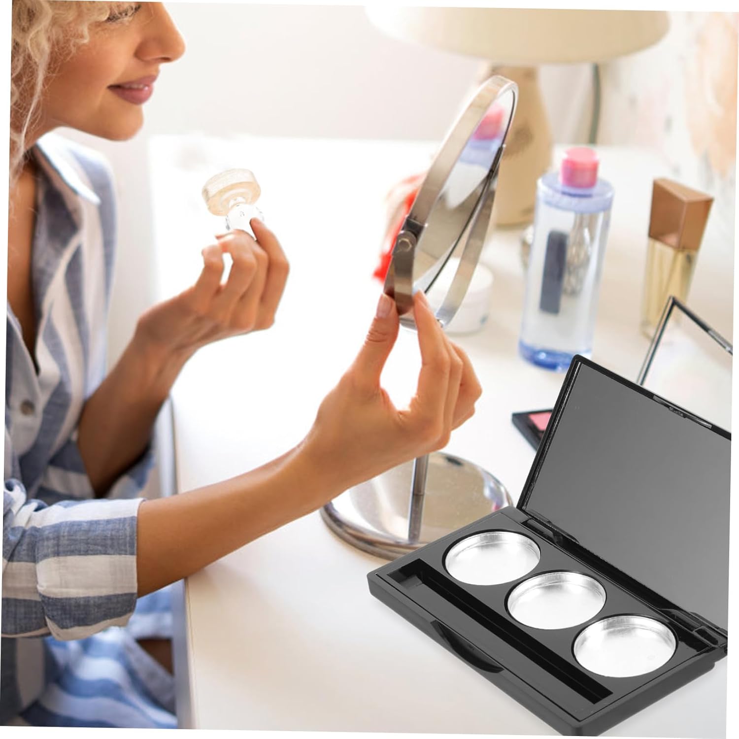 3-Color Rectangular Black Eyeshadow Palette with Mirror Empty Makeup Case for Highlighter Blush and Concealer for Women’s Makeup Collection