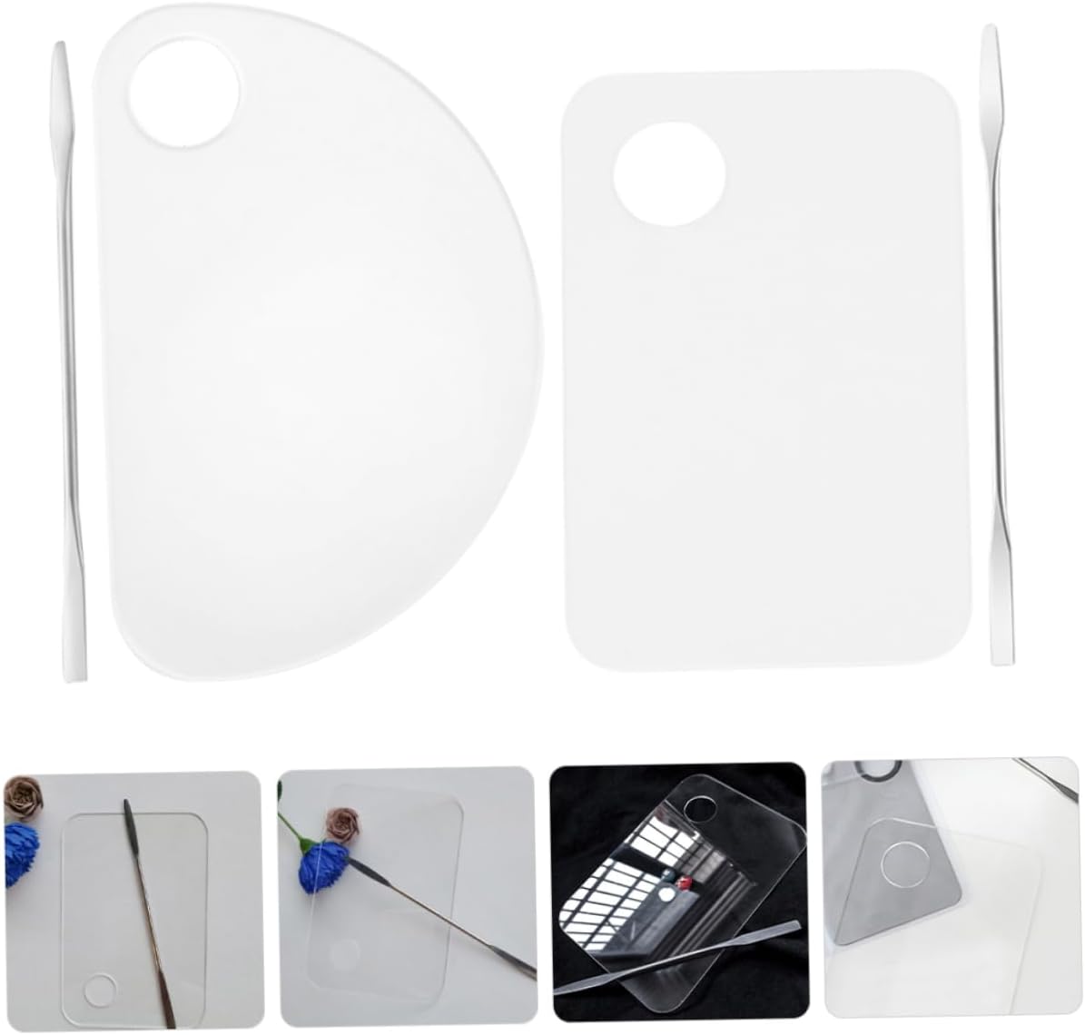 2sets Makeup Mixing Palette Transparent Blending Plates with Spatulas for Professional Makeup Nail Art and Projects Lightweight Easy to Clean