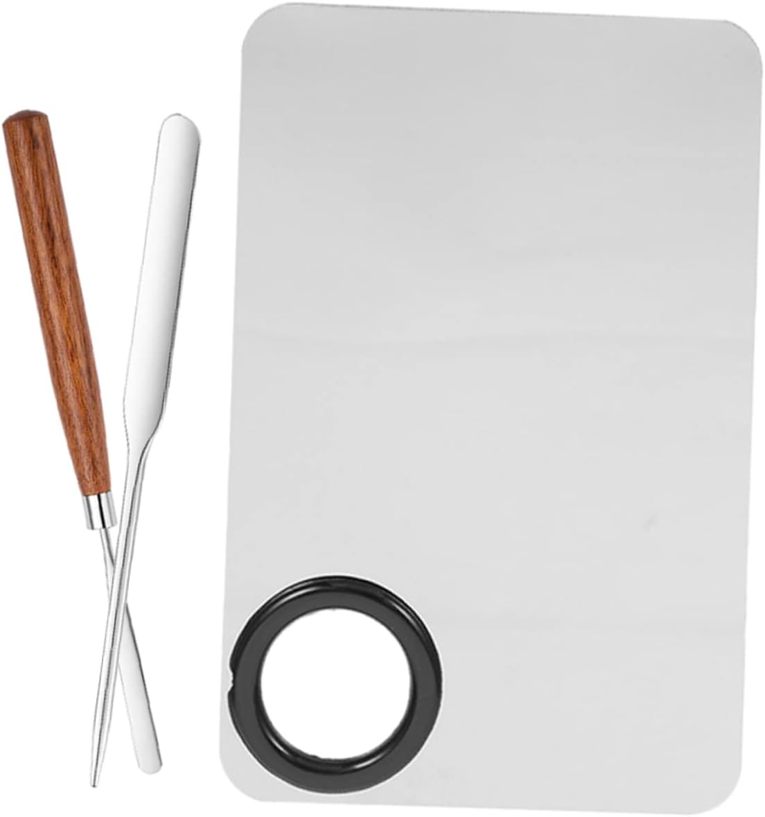 NOLITOY Makeup Board Palette Mixing Tray with Spatula Makeup Mixing Tray Cosmetic Woman Spatula Makeup Handheld Professional Storage Paint Eye Shadow Pallets for Women Stainless Steel