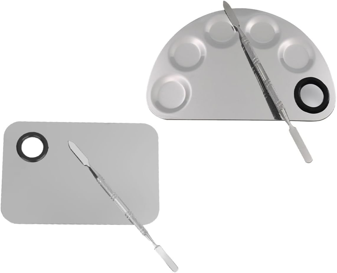 NOLITOY Stainless Steel Makeup Mixing Palette Set Makeup Foundation Mixing Plate Spatula for Blending