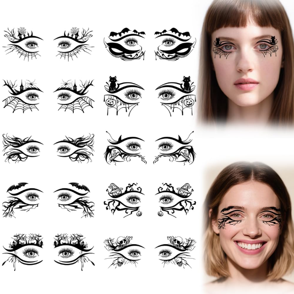 Halloween Decoration Kit: You will get 20Pcs/10pair eyeshadow stickers for Halloween party face eye makeup tool with Individually packaged box,and assorted styles will add much fun to your theme party, costume party, etc