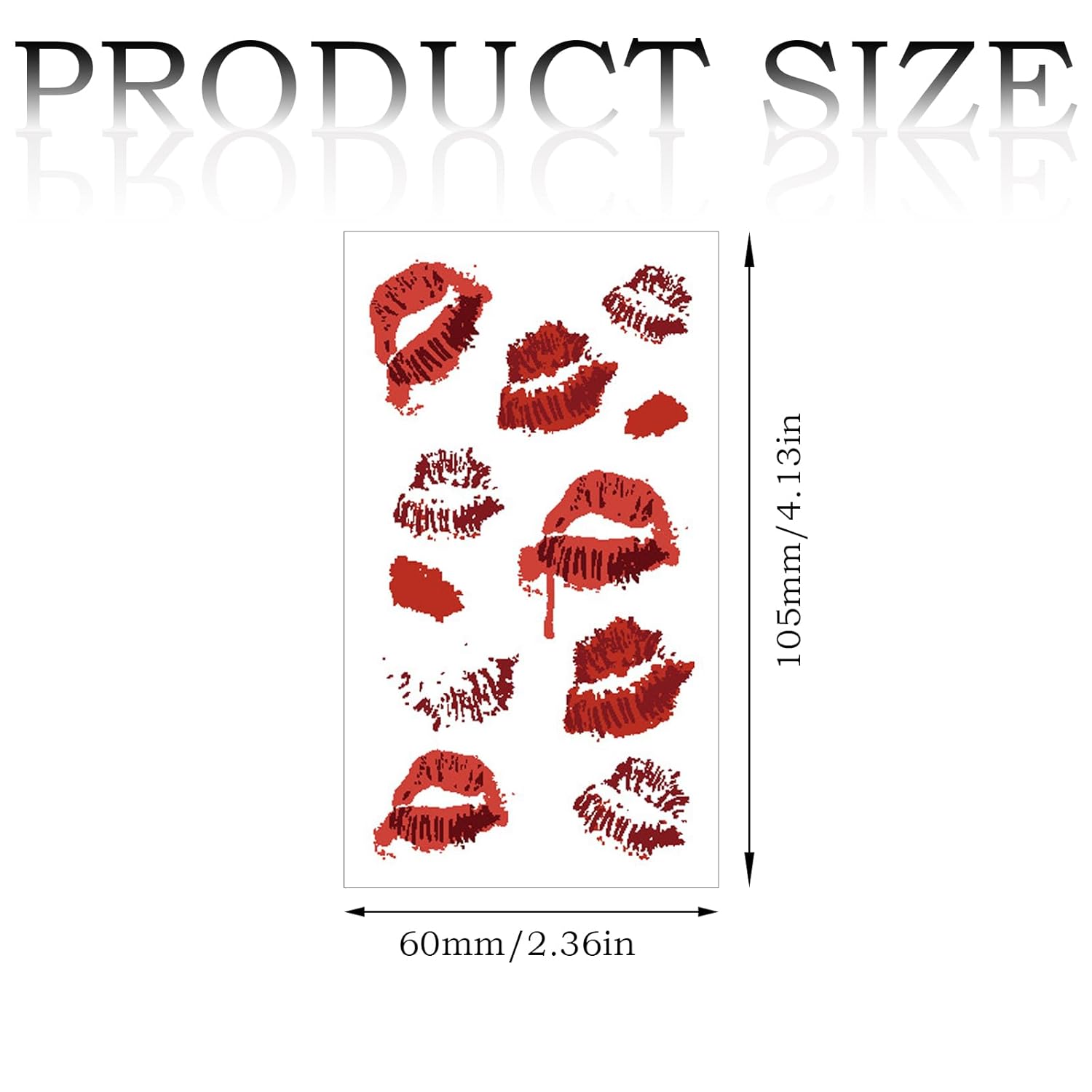 10 temporary tattoo stickers (60×105mm/2.36in×4.13in) with sexy lip patterns on them Durable waterproof and sweat proof it can withstand exposure to sweat and water for up to 5 days It can be applied to the face neck lower back or thighs