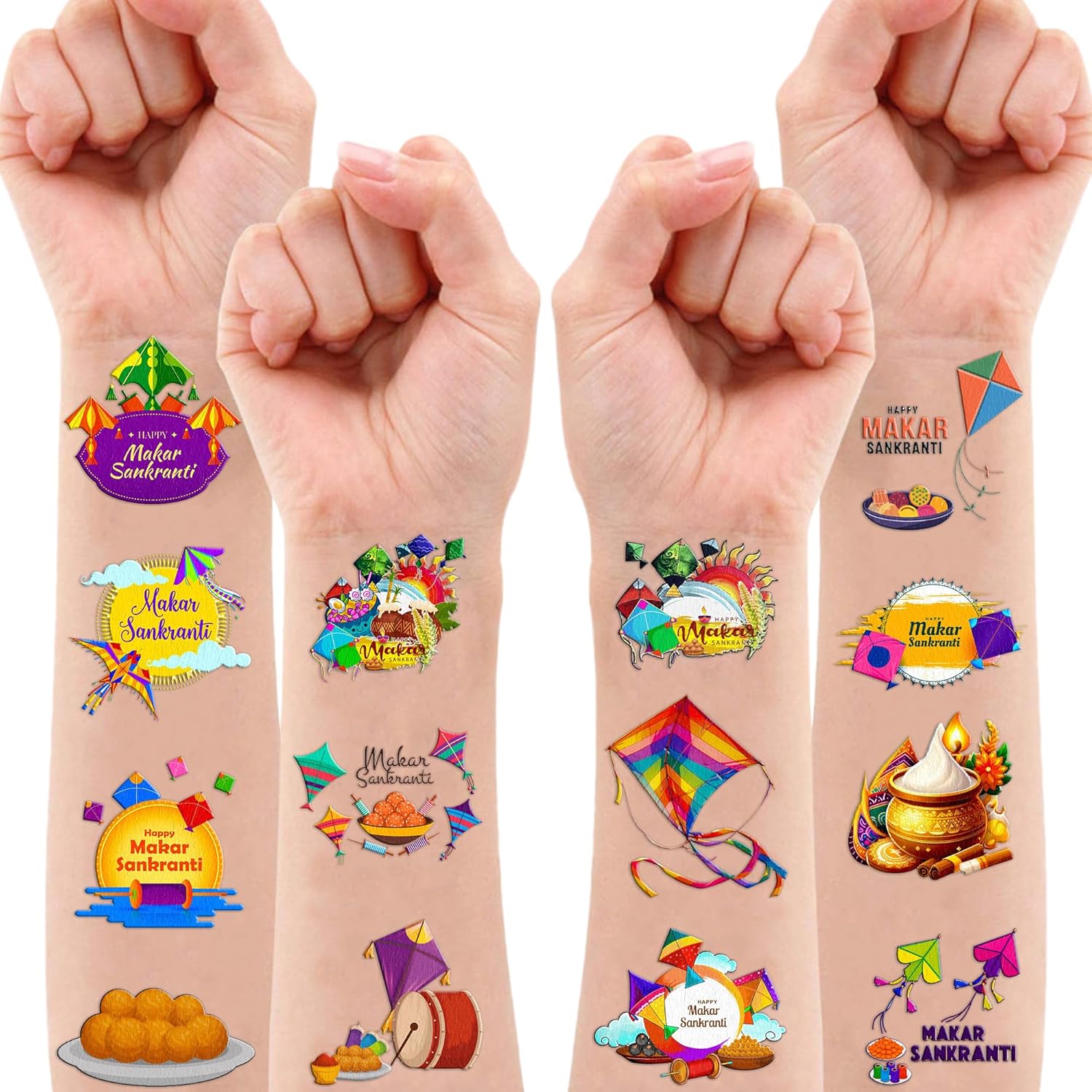Widely used: Happy Makar Sankranti Kite Fly Indian Pongal Harvest Temporary Tattoos pieces are suitable for many occasions such as birthday party supplies, party decorations, party favors, party bags, DIY decorations, pool and the beach or gift. Temporary tattoos are the best party favors and goodie bags fillers ever for any kind of celebration!