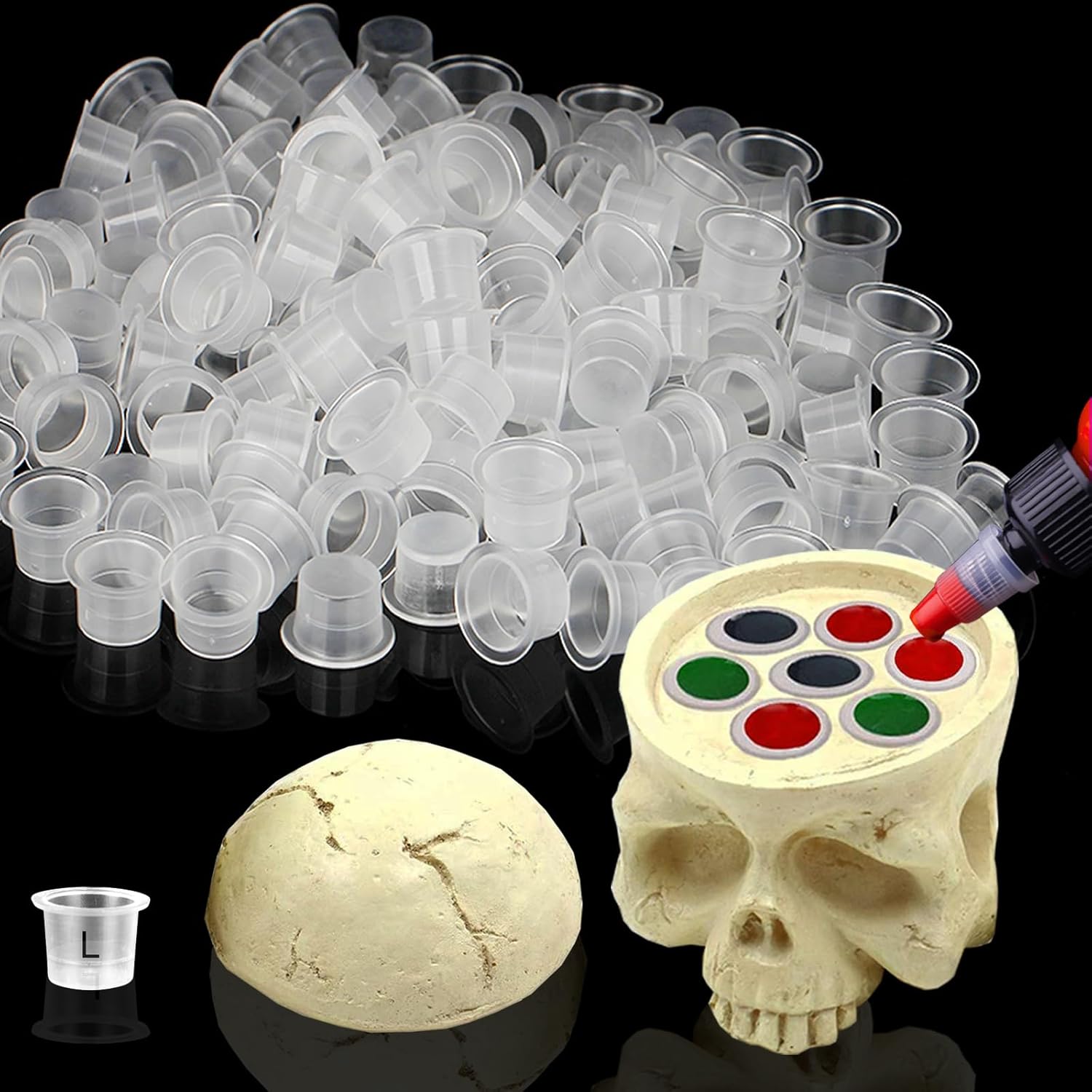 【Easy to Use】 - The tattoo pigment cups are perfect for used to hold tattoo pigment or ink. Easy to clean and store. Can be loaded with a small amount of tattoo ink to avoid waste. Help you to finish a beautiful tattoo.
