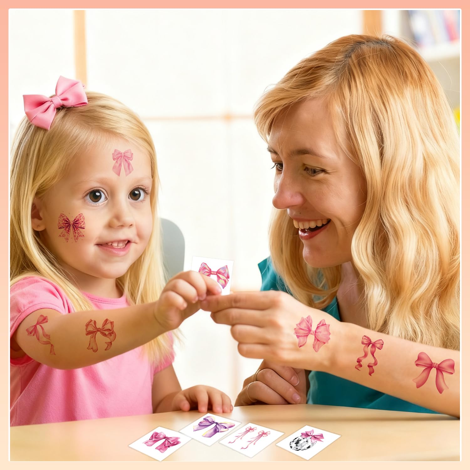【PINK BOW TEMPORARY TATTOO THEME】:Let your kids start a party experience like no other with these pink bow tattoos whether they're dressing up for a themed party or simply adding a touch of fun to their day-to-day activities.These pink bow temporary tattoos are a great way to spark joy in their hearts.