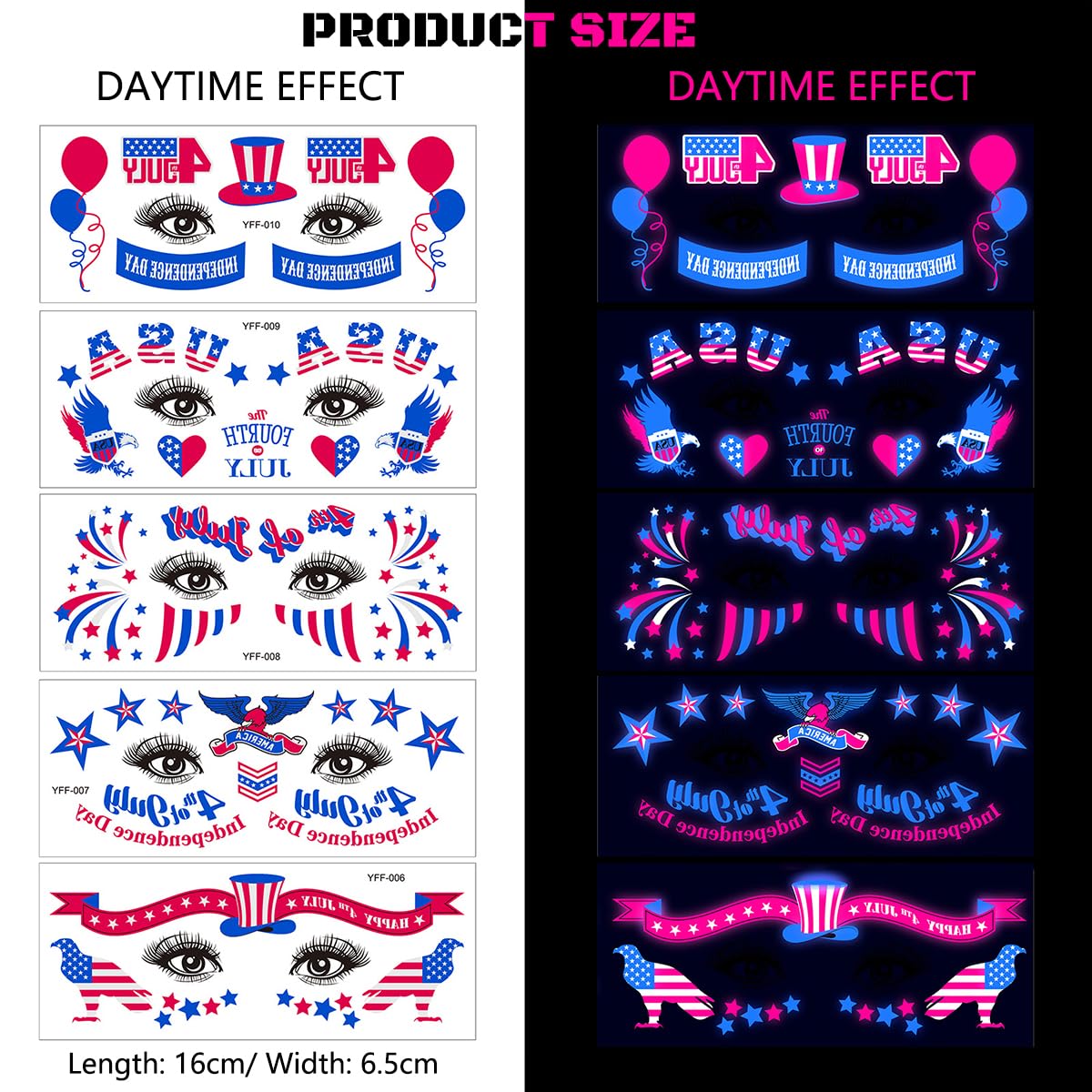 Package content: You will receive 10 Sheets 4th of July Face Tattoo temporary tattoos stickers for men and women facial art decorations! look different and attractive on 4th of July parties