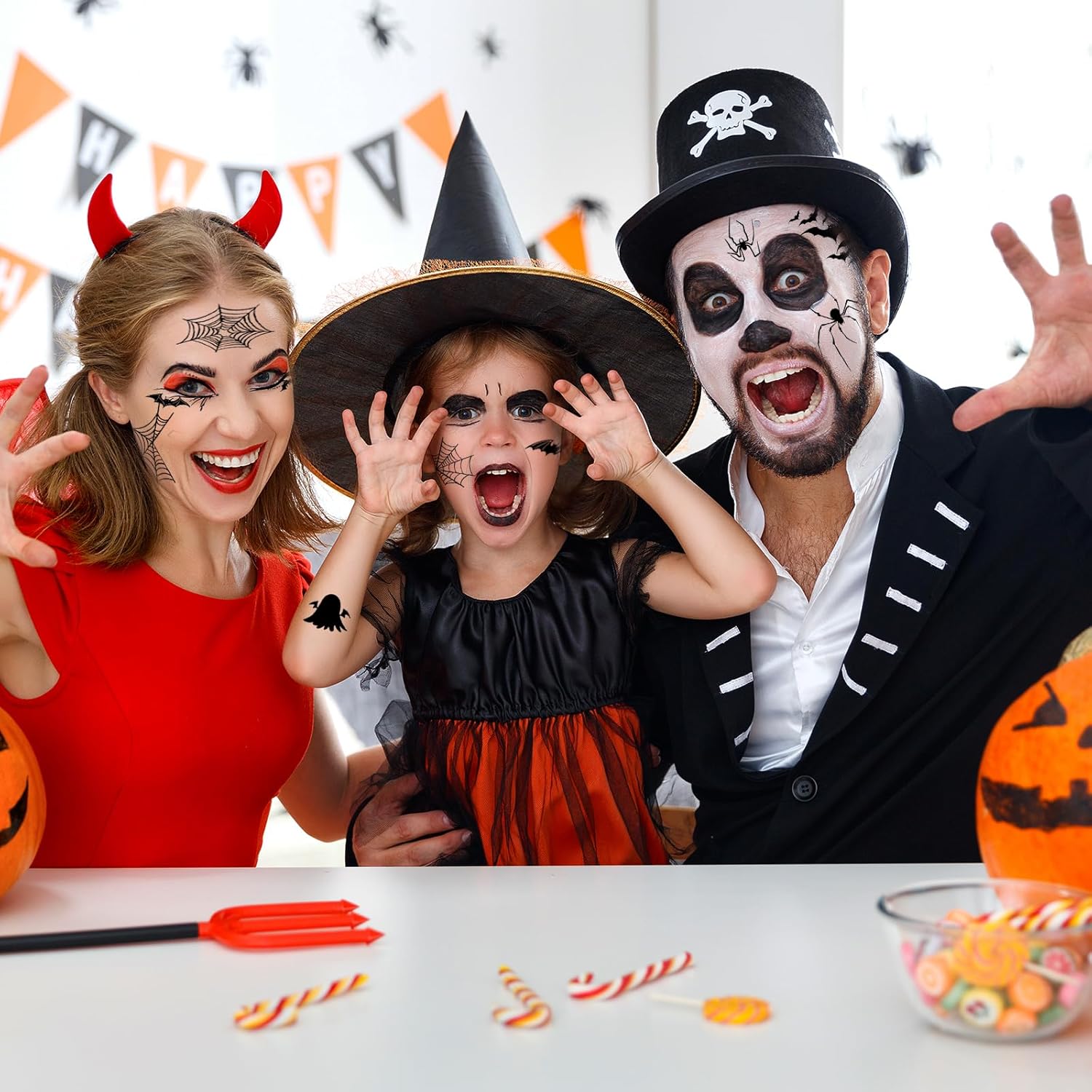 【EASY TO USE】- Put the Halloween face tattoos and wet it, in less than 30 seconds with long lasting tattoos. These Halloween spider web temporary tattoos are easily removable by rubbing baby oil.