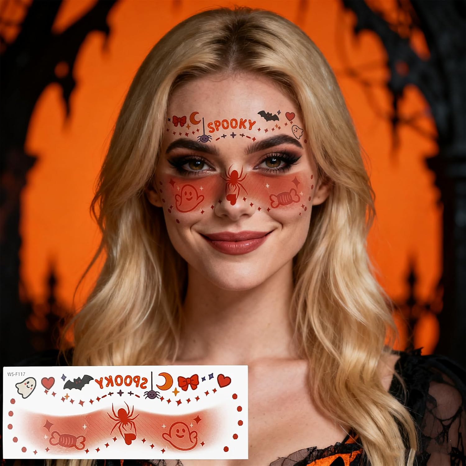 12-Sheet Pattern Set: Includes 12 Halloween face and eye tattoo stickers with different designs, covering various terrifying elements such as spiders, bats, and ghosts. You can choose freely according to your makeup style, and have a variety of makeup matches ready at one time.