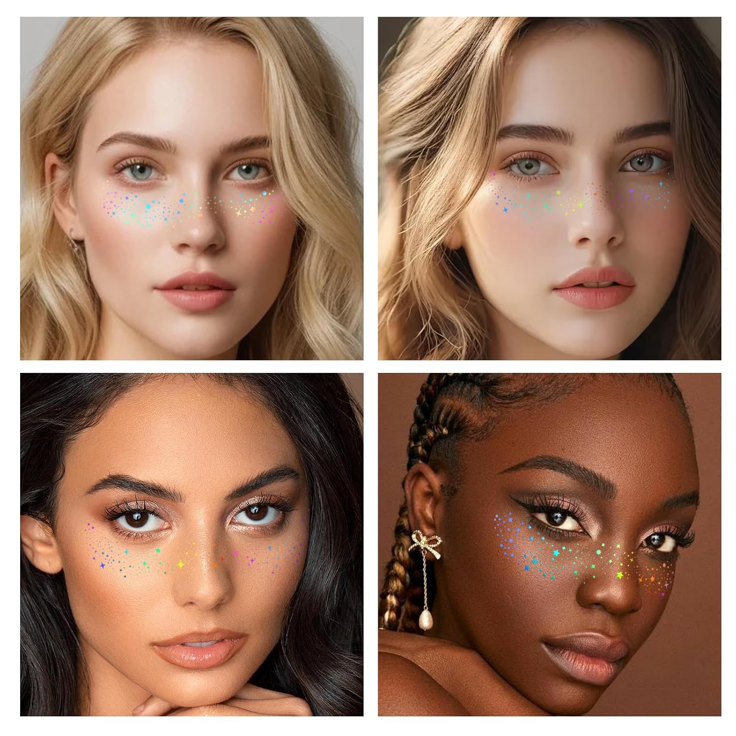 Holographic and Multichrome: Unlike other temporary glitter freckle stickers, this set has a chameleon effect, with holographic and multi-coloured freckle stickers that give off different colors in different lights, gorgeous and fascinating