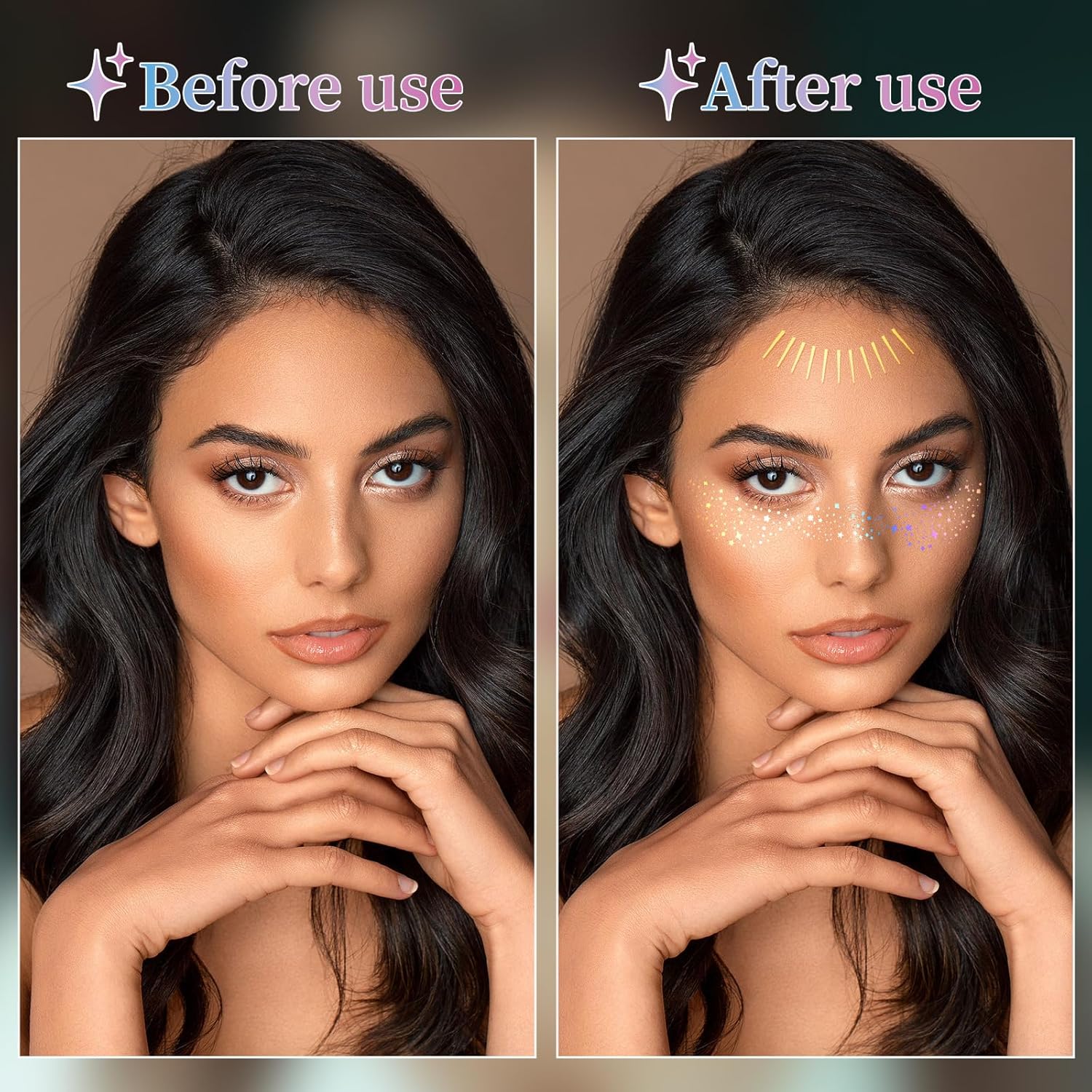 Add Your Glamour: These glitter freckles are perfect for creating natural-looking, shimmering accents on your face, whether you're heading to a festival or a night out. Enjoy long-lasting, beautiful face glitter freckles that make your skin sparkle