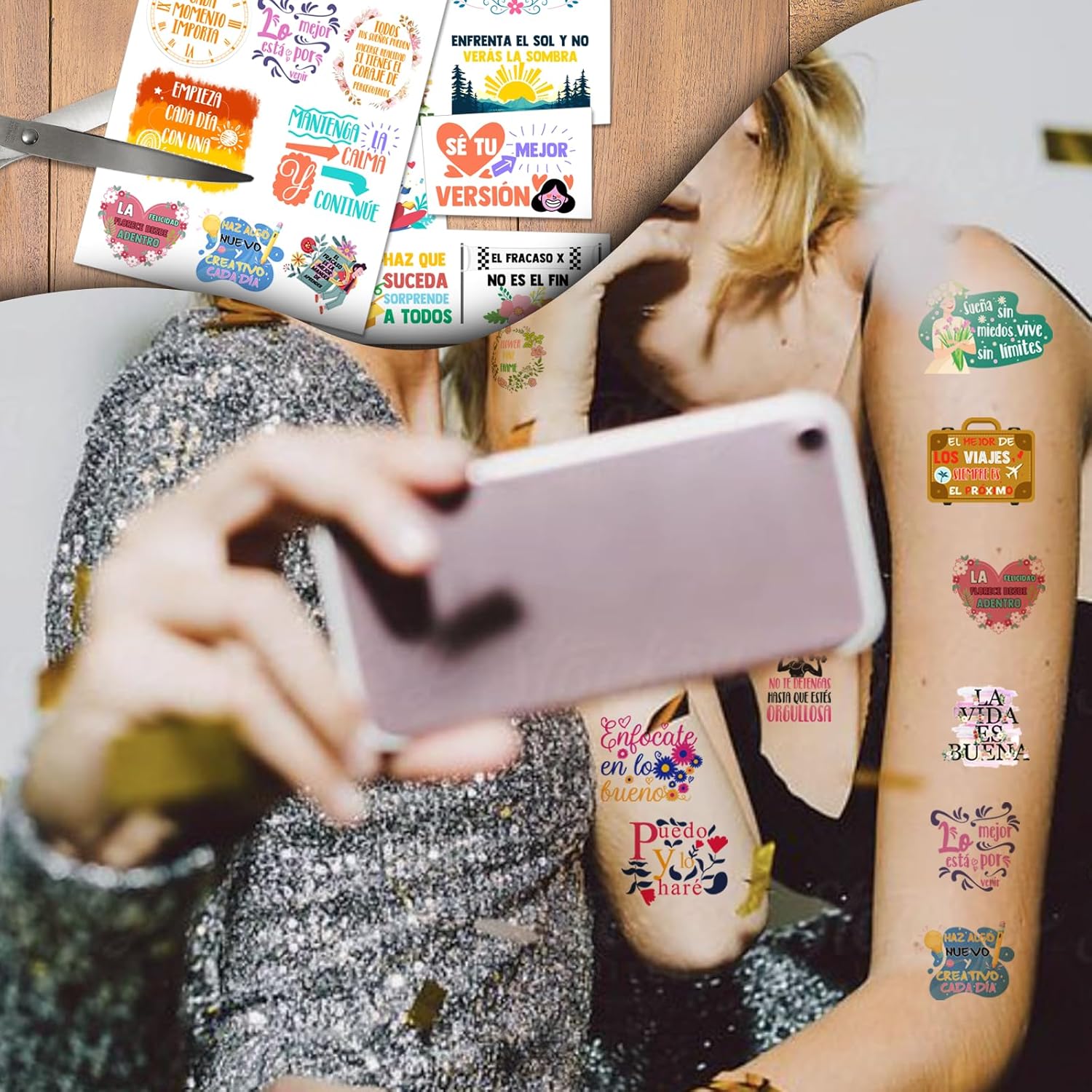 Encourage and Inspire: Our inspirational temporary tattoos are perfect as positive affirmation temporary tattoos. Use them as motivational temporary tattoos in your spanish classroom decorations, or as spanish party inspiration.