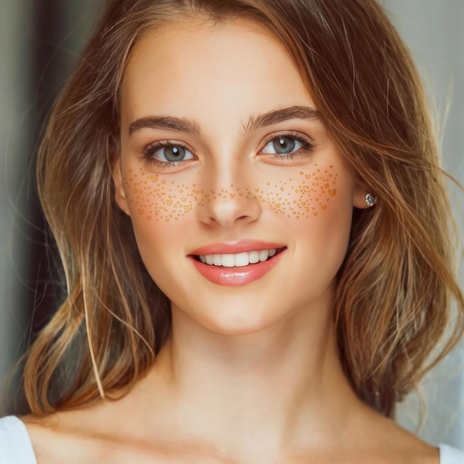 【Long-Lasting Wear】The glitter freckle face tattoo pads are waterproof and sweat-resistant, making them perfect for all-day events. Besides, our glitter face tattoos stay intact even during dancing or outdoor activities without smudging. Meanwhile, they can be removed with makeup remover or baby oil without leaving residue.