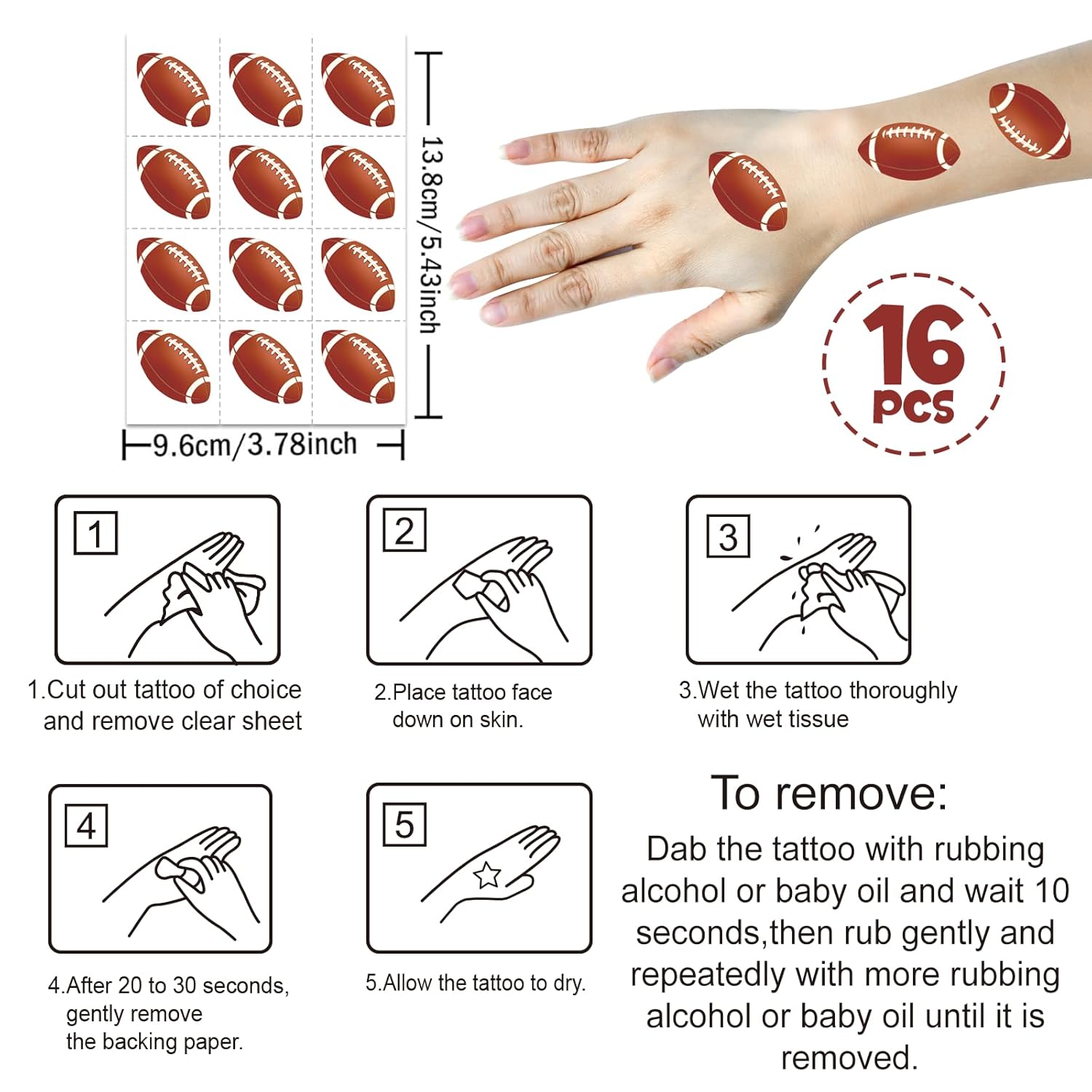16 Sheets of Tattoos: Loaded with sports tattoos for kids, each sheet is pre-cut for easy use. These football tattoos temporary designs are perfect for parties, games, or just showing off team spirit.