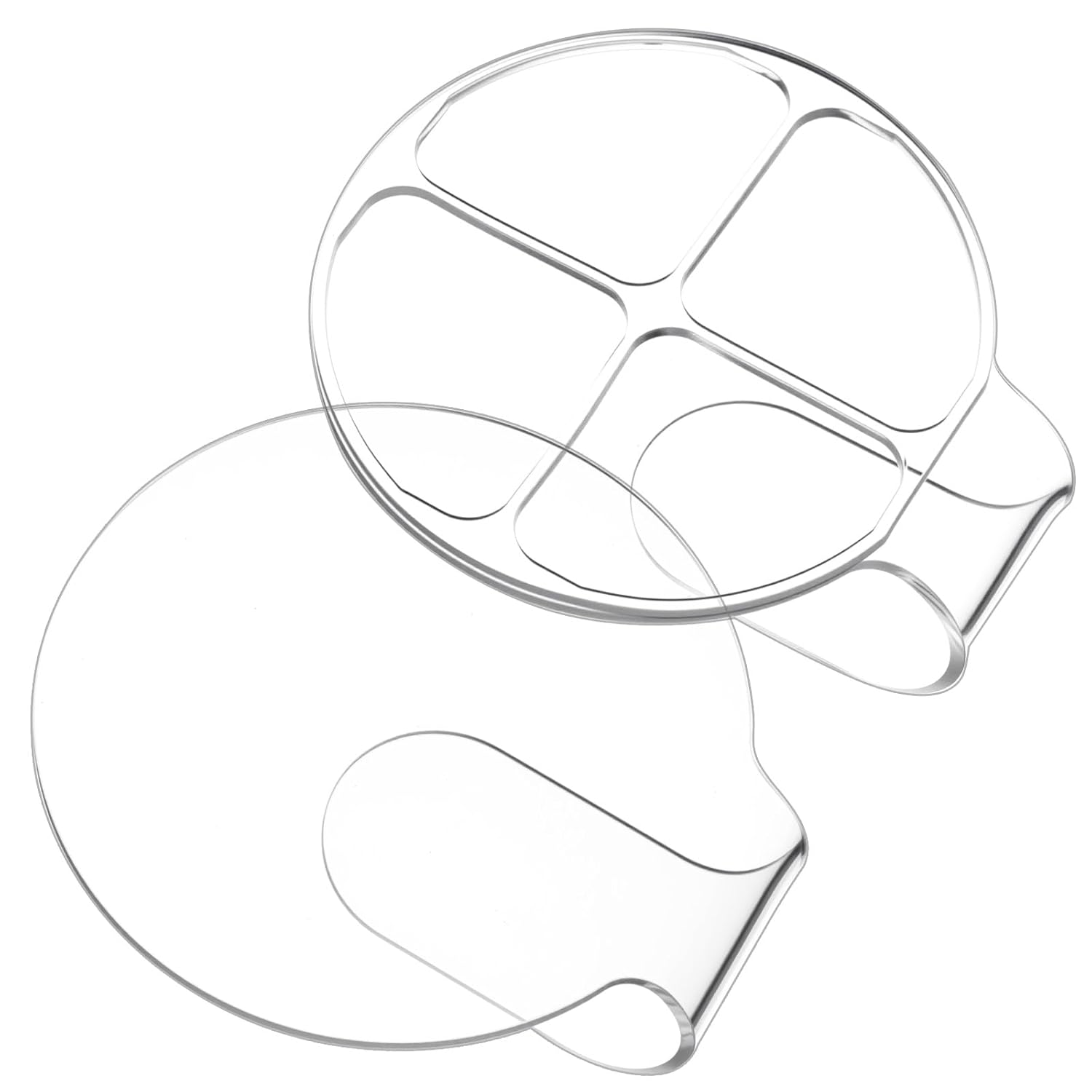 PREMIUM ACRYLIC MAKEUP PALETTE: This set includes 2 durable acrylic makeup palettes, perfect for blending foundation, eyeshadow, lipsticks, and more. The high-quality acrylic material ensures long-lasting use without breaking or deforming, making it a must-have for any makeup enthusiast.