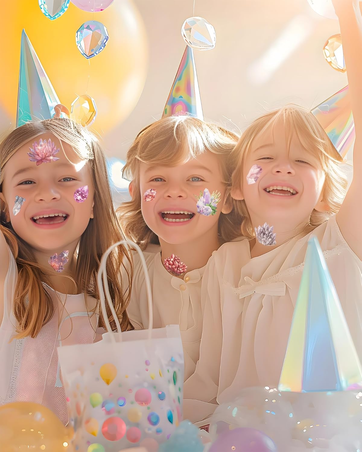 Hypoallergenic and Safe: Our Crystal Temporary Tattoos are hypoallergenic, ensuring they are safe for kids gems and diamond decorations for party. They are perfect as diamond birthday decorations and crystal party favors.